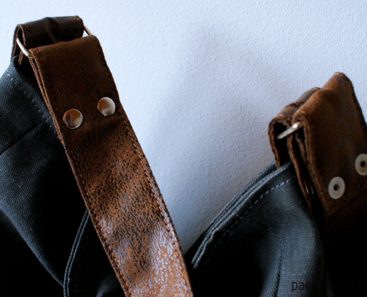 Zgrabna i bardzo pojemna torba (swobodnie mieści format A4 - nawet teczkę) wykonana z płótna oraz alkantary typu gobi. Szerokie ucho oraz nietypowe dno (kształt X) sprawia, że torba miękko się układa i dostosowuje kształtem do właścicielki. W środku wyłożona jest podszewką z kieszonką na zamek oraz dwiema kieszonkami wsuwkami dodatkowo w podszewkę wszyta jest smyczka na klucze zakończona karabinkiem. Torba wegetariańska, bez wykorzystania elementów pochodzenia zwierzęcego.