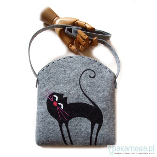 Mam dzisiaj przyjemność przedstawić. Elegancką a zarazem nowoczesną torebkę wykonaną z 4mm filcu. W całości zaprojektowaną i wykonaną przez dyplomowanego artystę plastyka!!!! Torebka wykonana z dbałością o najdrobniejsze szczegóły. Wymiary torebki: wys. na środku ok. 22,5cm, szerokość ok. 20cm, pasek ok. 125cm. Główną ozdobą torebki jest malowany wzór kotka. Posiada magnetyczne zapięcie. Wzór torby oraz fotografie chronią prawa autorskie, ich kopiowanie jest zabronione