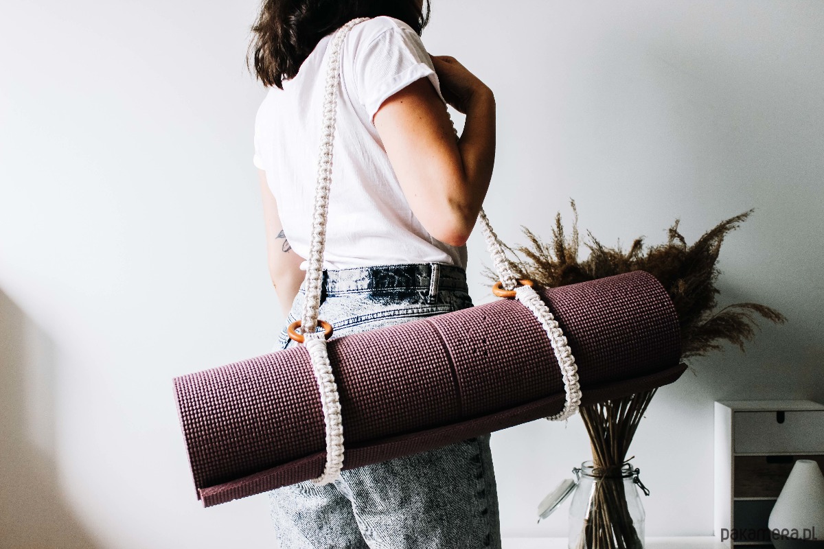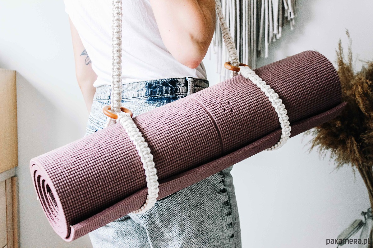 Ściągacz pasek na ramię do maty do jogi/ fitness/ pilates. Wyplatany z naturalnego sznurka bawełnianego.