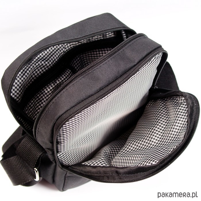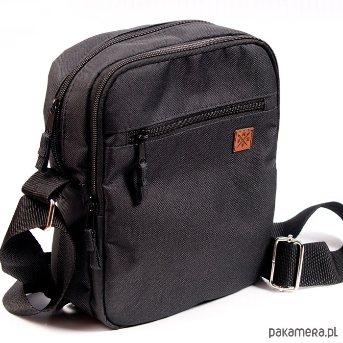 Pojemna torba Nuff wear, wykonana z cordury. Wyłożona podszewką w drobną kratę. Trzy praktyczne komory zapinane na suwaki. W głównej komorze dodatkowo kieszonka zapinana na zamek. Szeroki regulowany pasek. Z przodu metka typu "skórka" Nuff Wear X. Z boku wszywka z logo Nuff Wear. Wymiary: 24 x 18,5 x 8,5 cm. Pasek regulowany do długości 138 cm. Kolor: czarny. Produkt Polski.