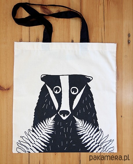 Torba bawełniana (150g) w naturalnym kolorze (kremowy) z czarnymi uszami. Nadruk wykonany ręcznie techniką sitodruku farbami plastizolowymi. Wymiary: 38x40 cm. Torba posiada długie ucho, do noszenia na ramieniu. Do produktu dołączamy nasze naklejki i pakujemy w bąbelkowe koperty. Autorem wzoru jest Tomasz Kaczkowski.