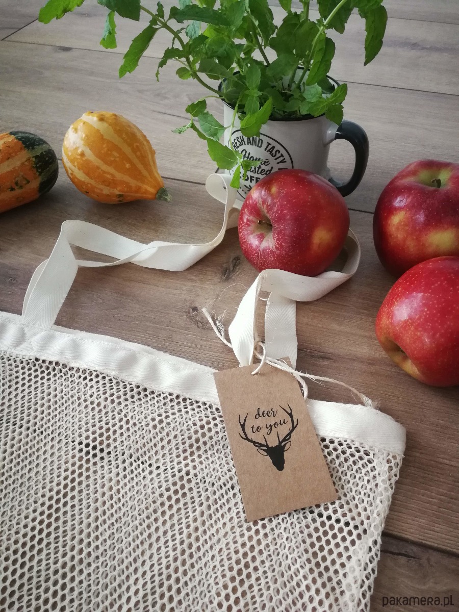 "Deer to you" poleca świetną, wytrzymałą i lekką torbę bawełnianą wykonaną z przewiewnej siatki bawełnianej z certyfikatem Oeko Tex.