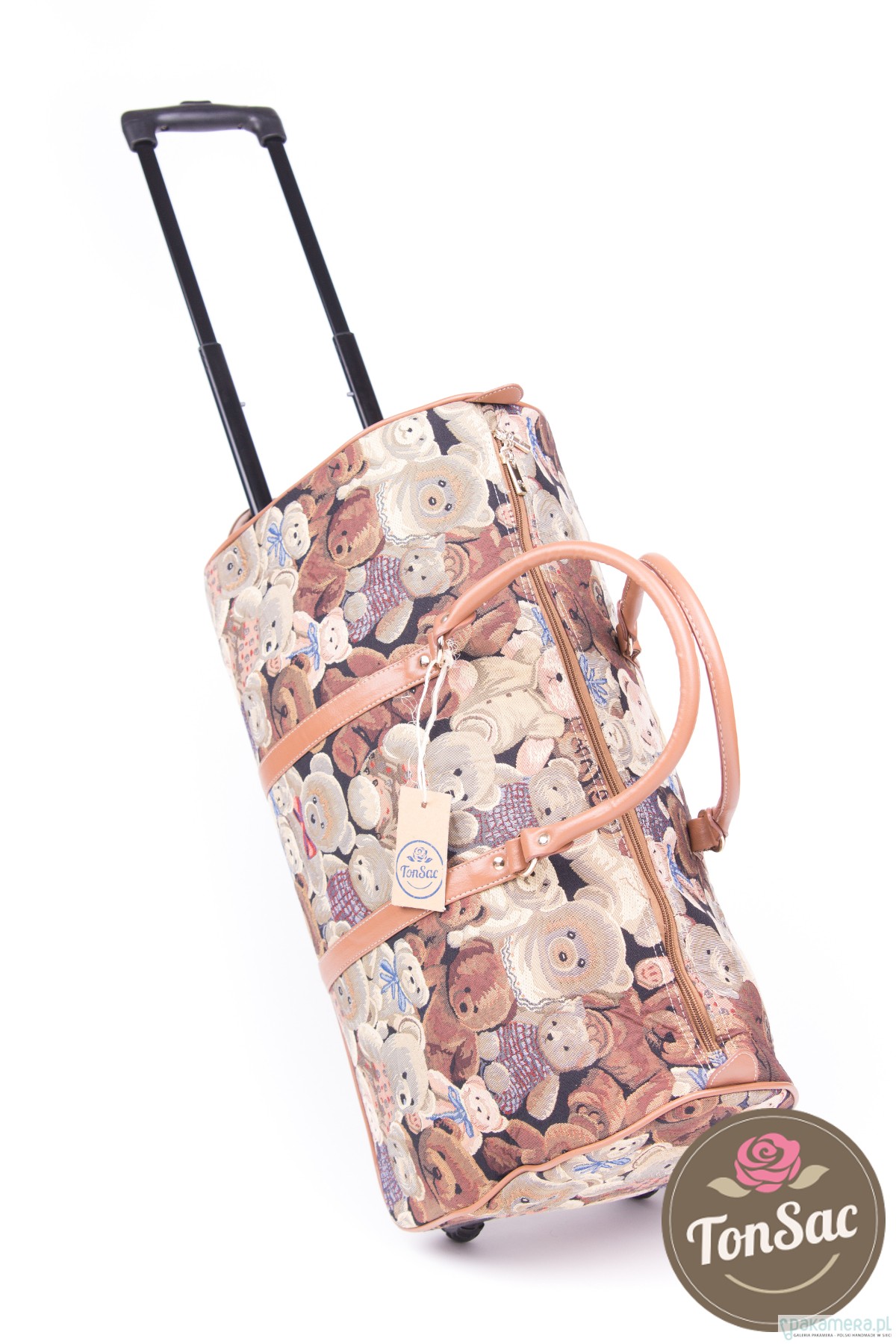 Torba na kółkach Délice. Specjalnie dla Teddy Bears Lovers. Idealna na wyjazdy, bardzo poręczna i pakowna. Pojemne wnętrze, szykowna podszewka, dodatkowa zapinana kieszonka – to wszystko czyni ją niezwykle praktyczną. Usztywnione dno, zgrabne gumowe kółka i wysuwana rączka, którą w każdej chwili możesz schować w specjalnej kieszonce, dają pewność, że torba sprawdzi się w każdej sytuacji. Wymiary 60 x 35 x 30 cm
