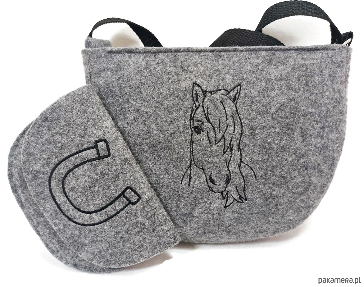 Oryginalna torebka wykonana z filcu z haftowaną głową konia,
