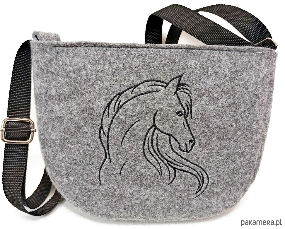 Oryginalna torebka wykonana z filcu z haftowaną głową konia,