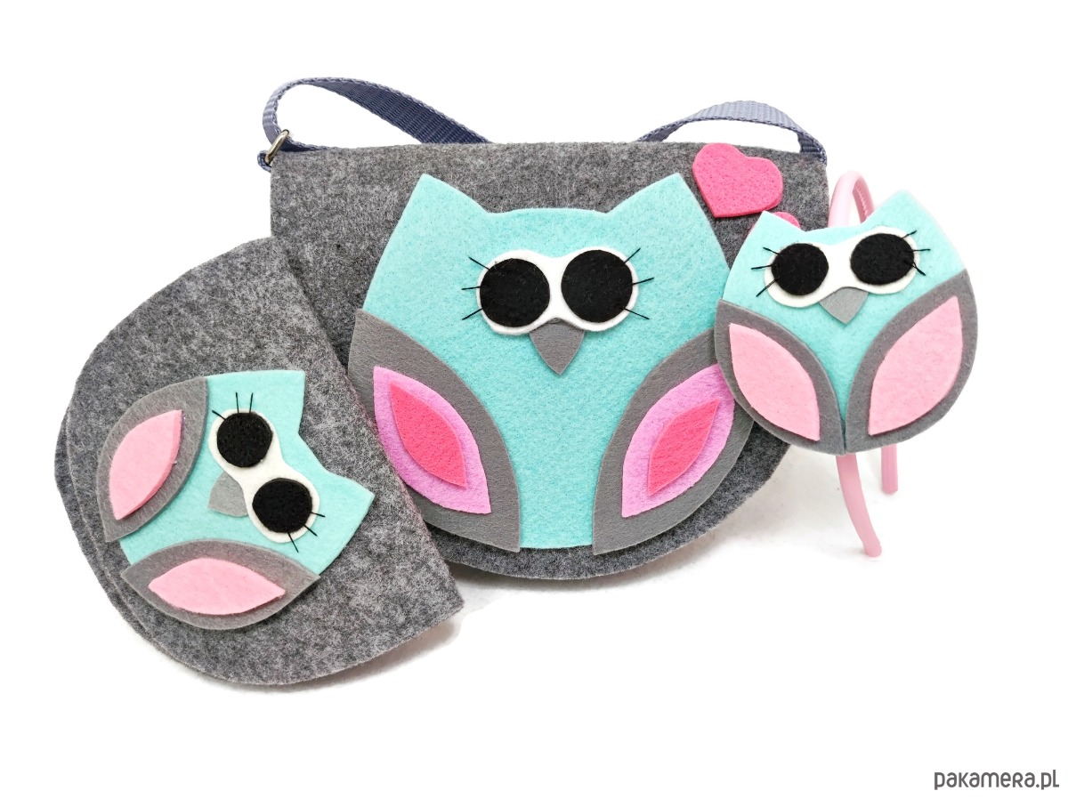 Torebeczka z sową, miętowa , opaska, portfelik sowa