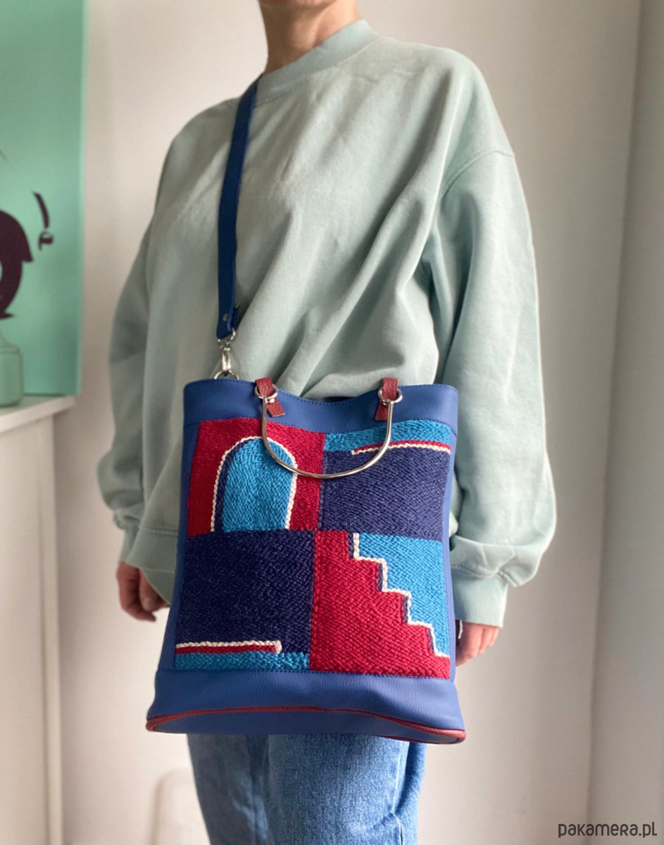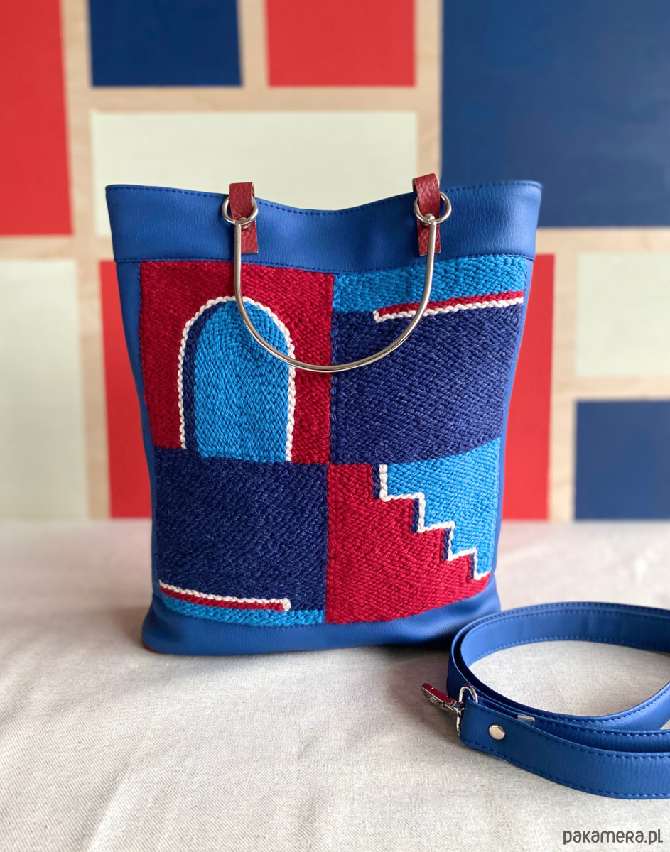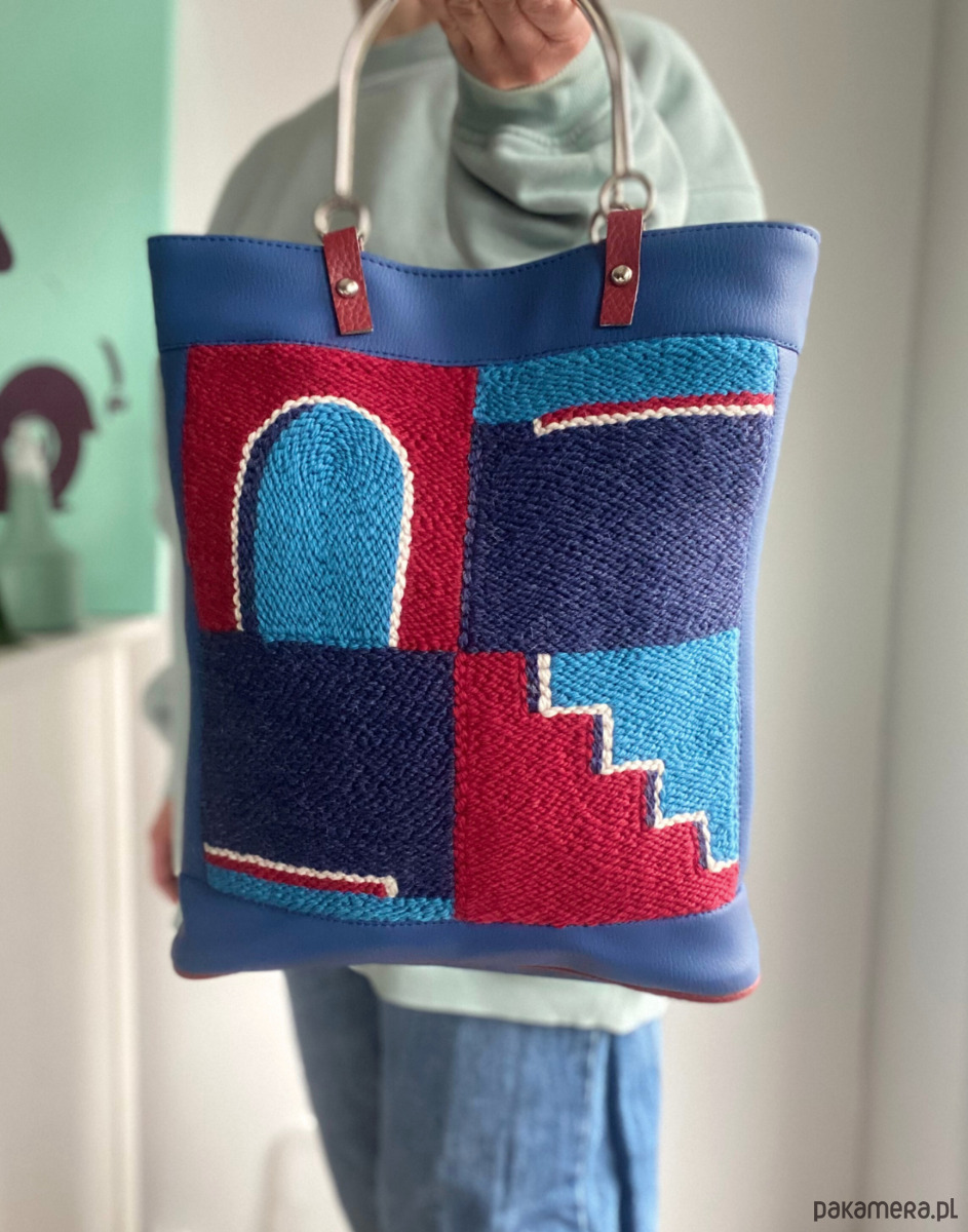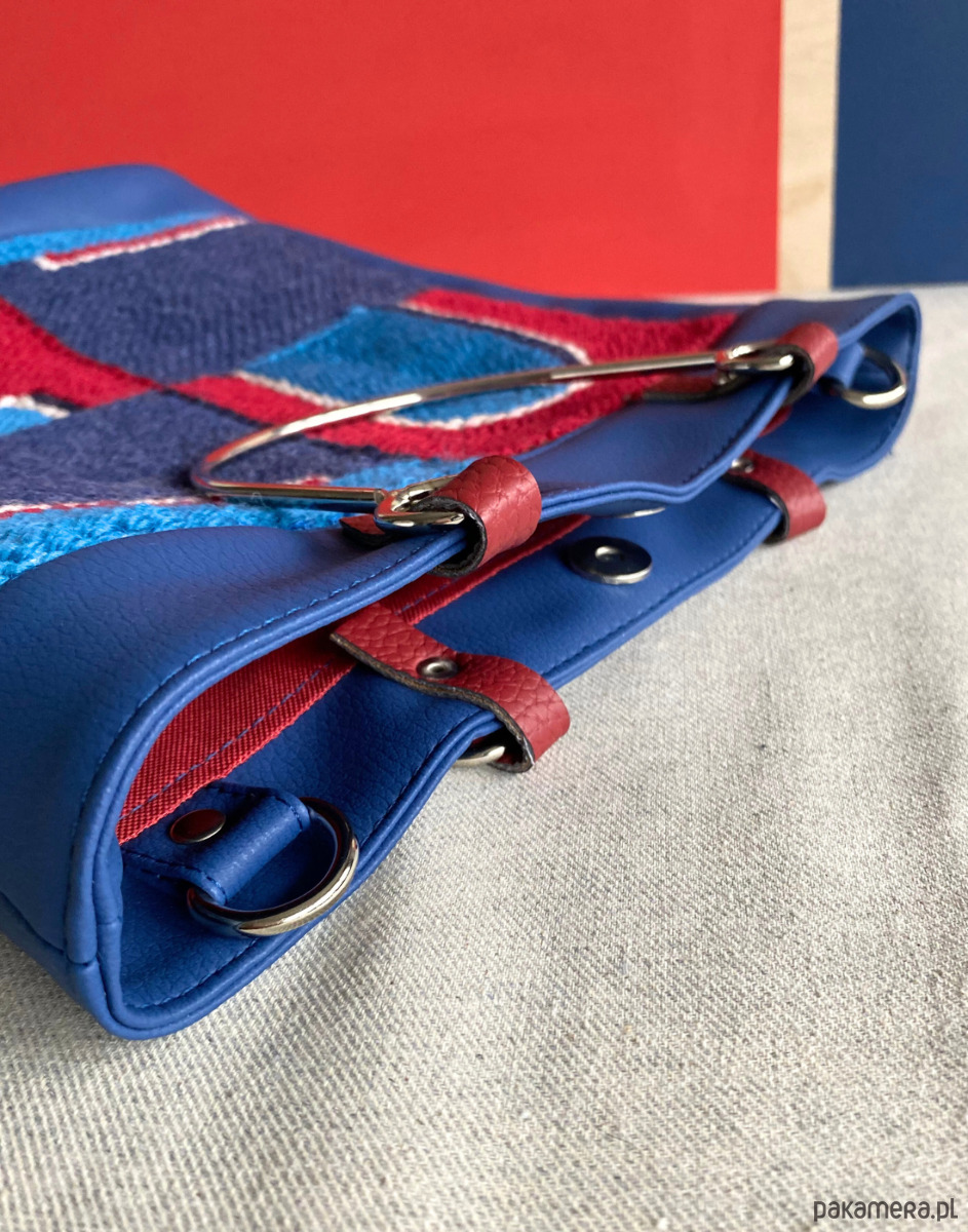 - materiały - haft: wełna, len, torebka: ekoskóra, poliester wodoodporny, metal