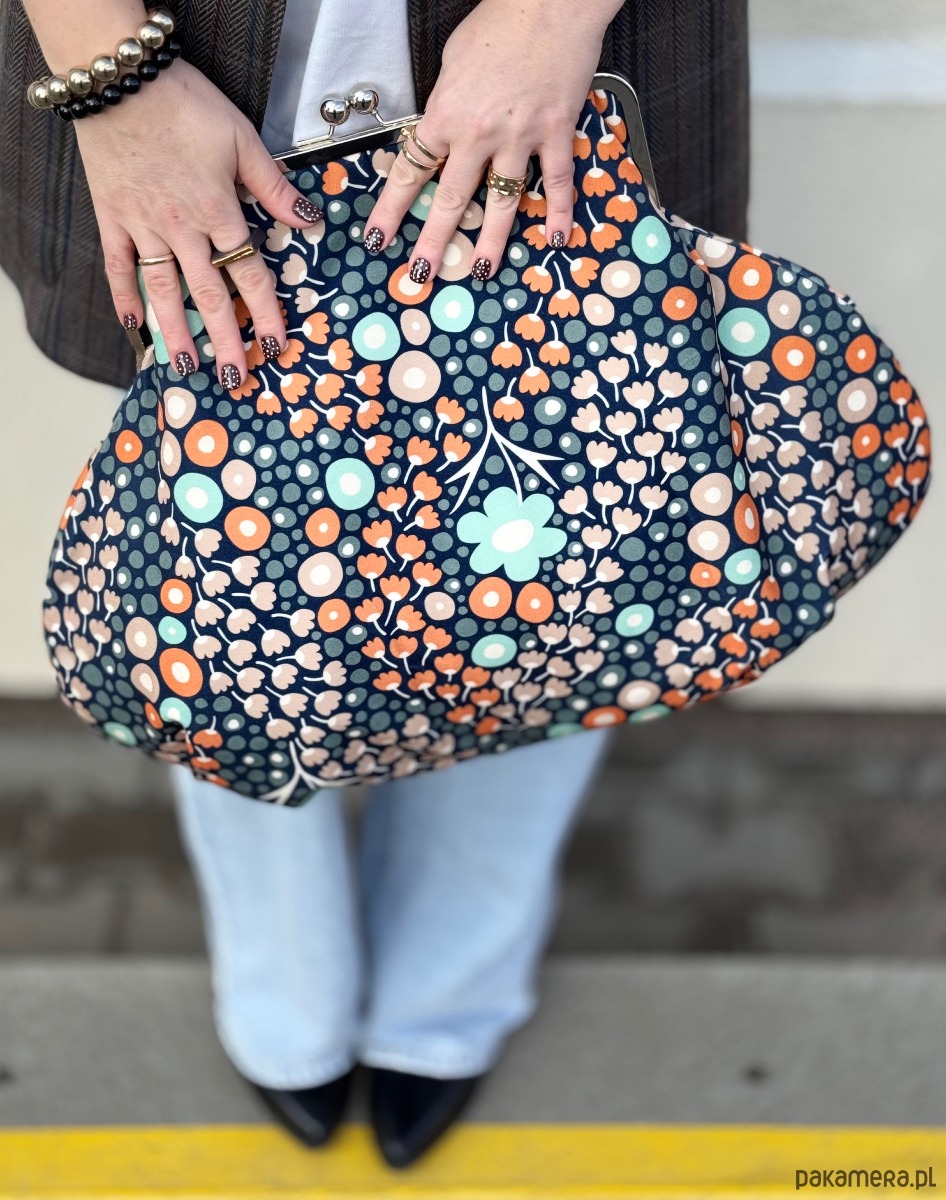Elegancka, duża, marszczona torebka zapinana na modne metalowe zapięcie bez problemu mieści format A4 Wykonana z wielobarwnej obiciowej tkaniny . W środku podszewka i kieszonka. Podszewka może mieć inny kolor od prezentowanej na zdjęciu. Torebka jest usztywniana i zaopatrzona w regulowaną rączkę do noszenia przez ramię. Wszystkie torebki tworzone są z pasją i zaopatrzone w metki z logo Twins.