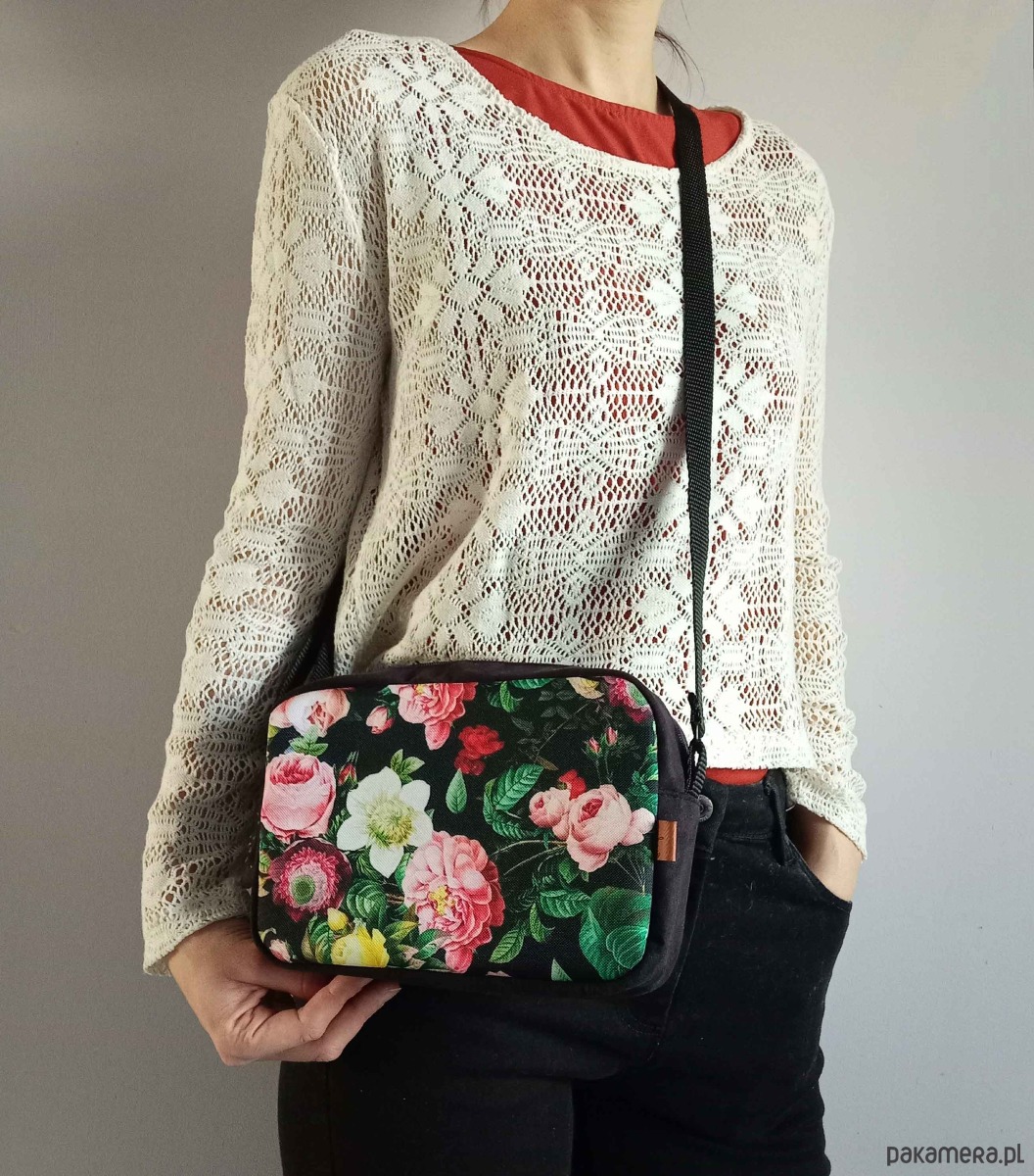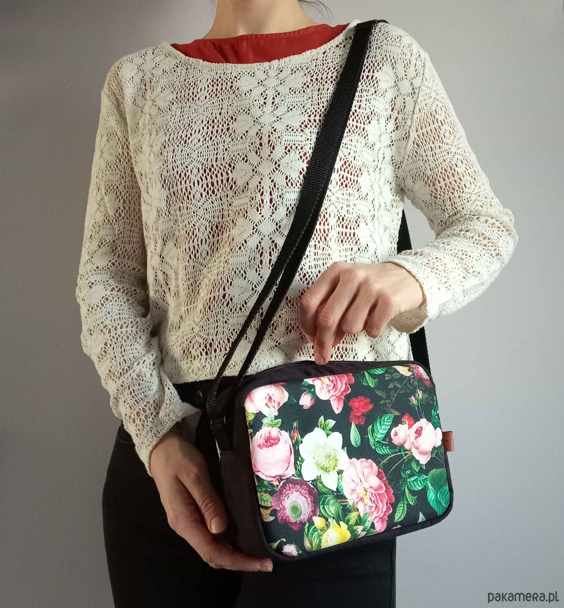 Możliwość noszenia na skos dzięki regulowanemu długiemu paskowi. Rodzaj zastosowanych suwaków może się zmienić - w zależności od dostępności.