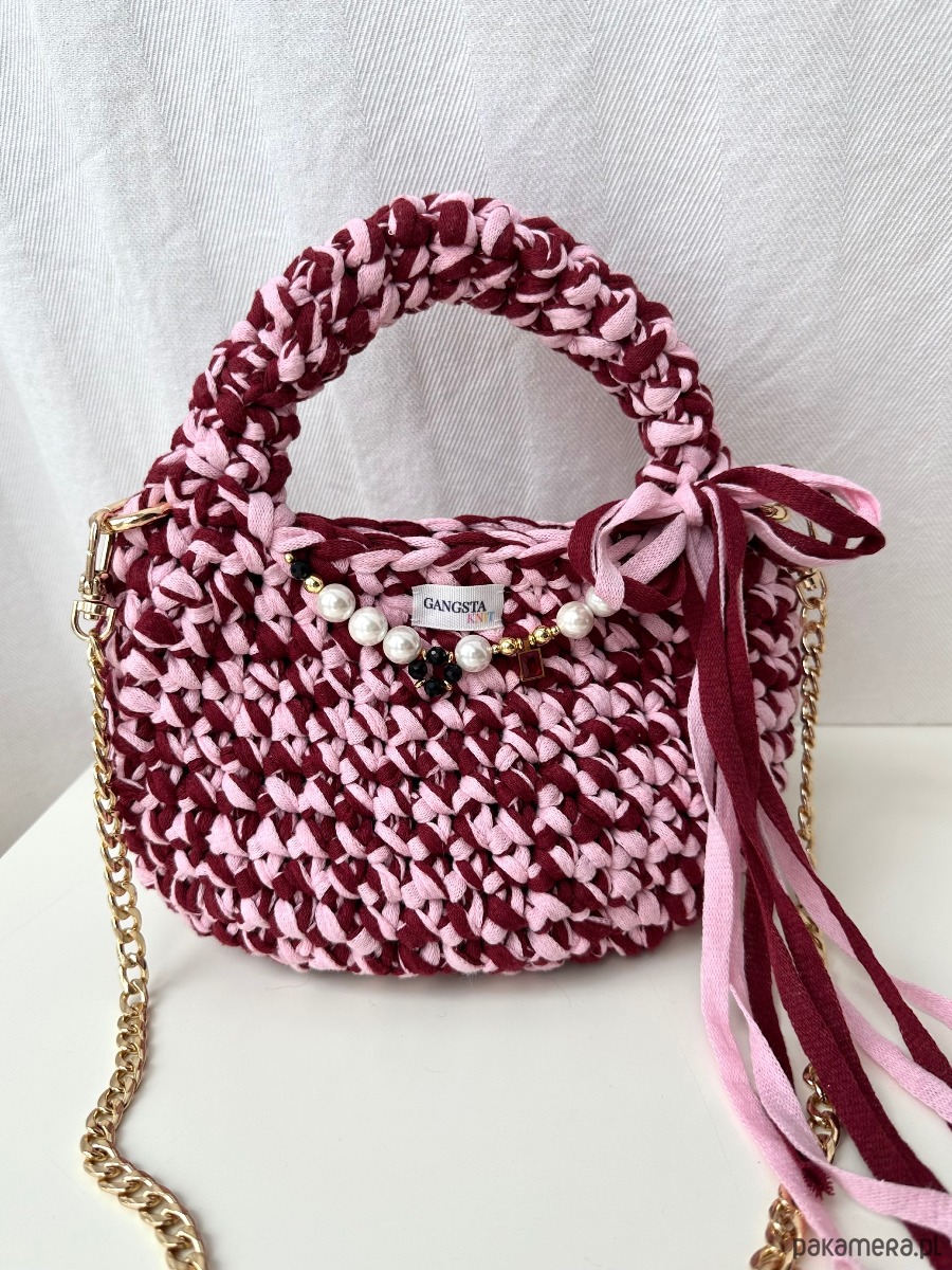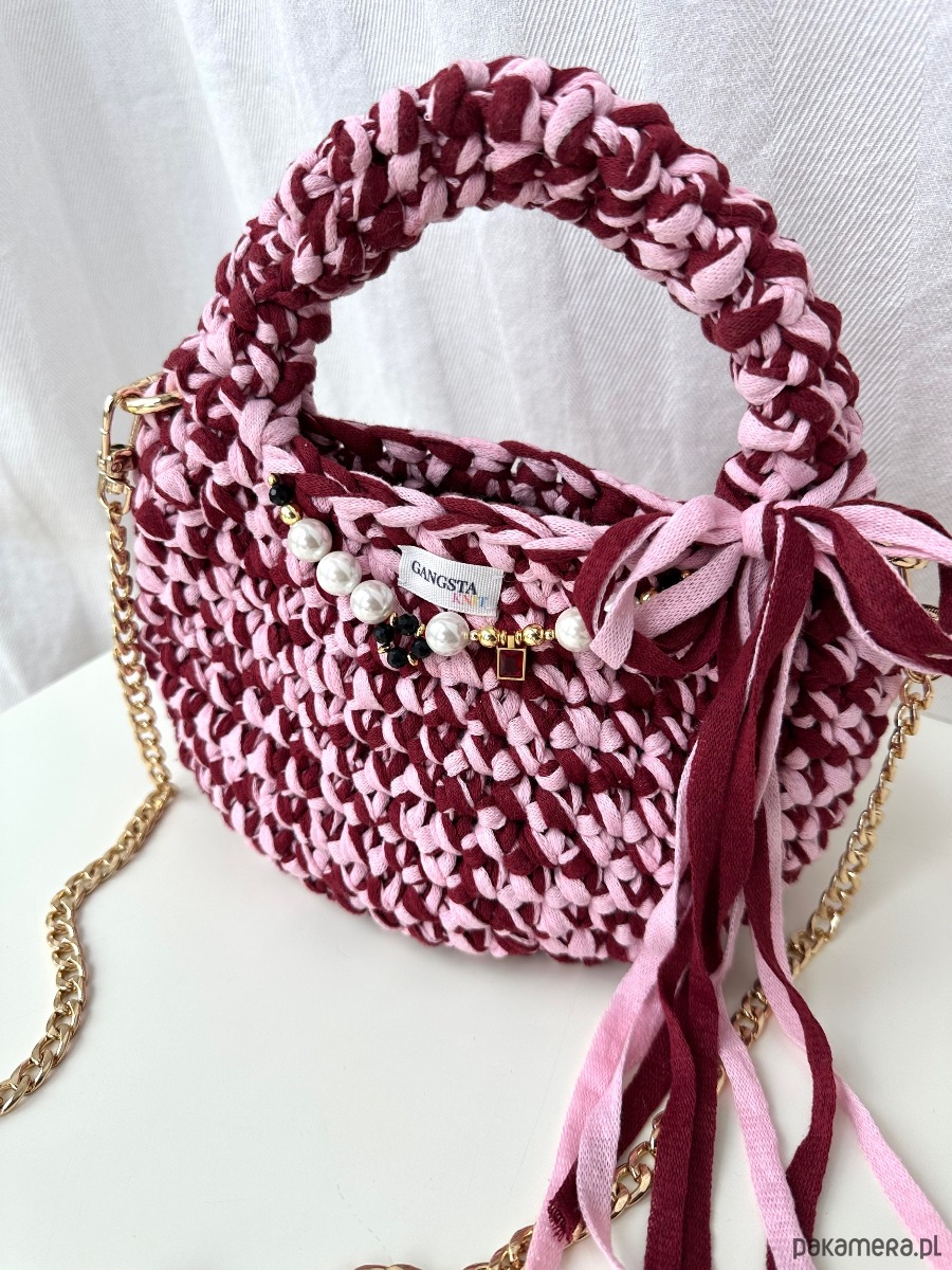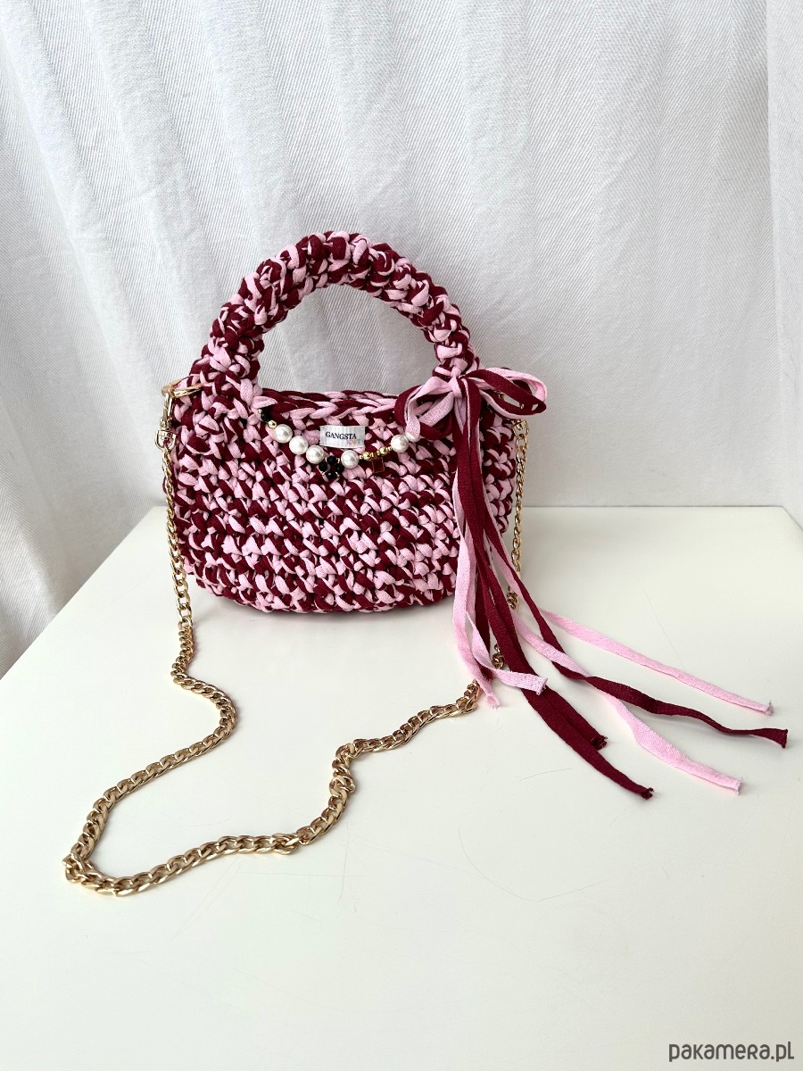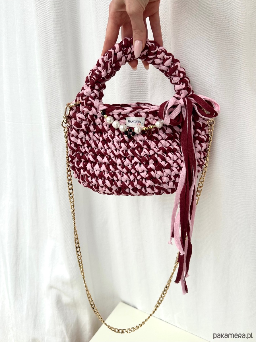 Torebka Cherry z naturalnymi kamieniami i kokardką
