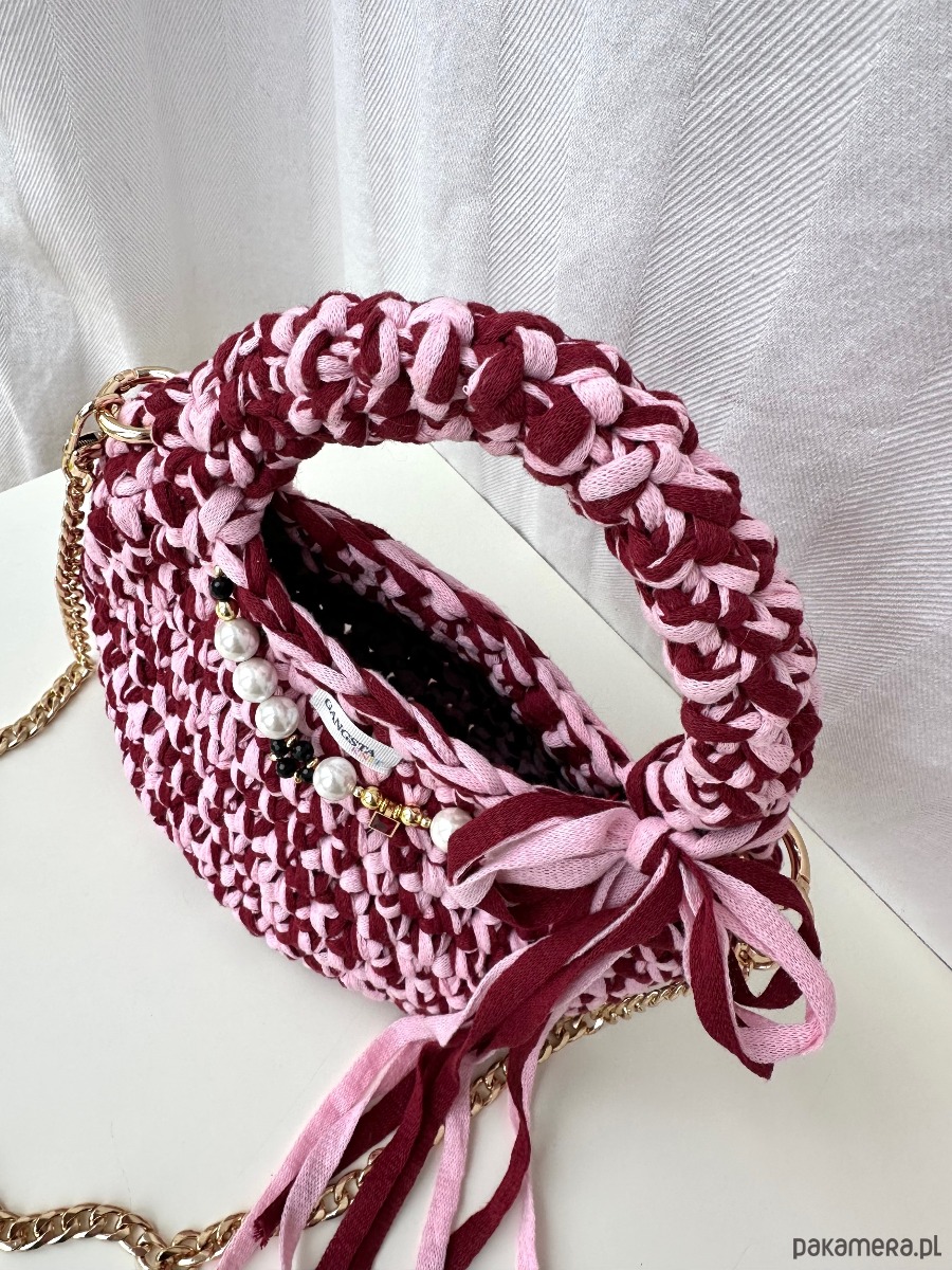 Głęboka wiśnia przeplata się z odcieniem pudrowego różu, tworząc strukturę, która przyciąga spojrzenia.