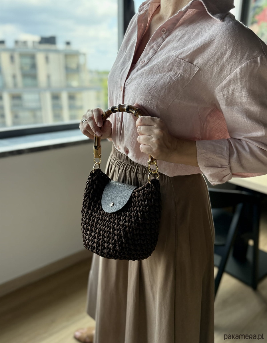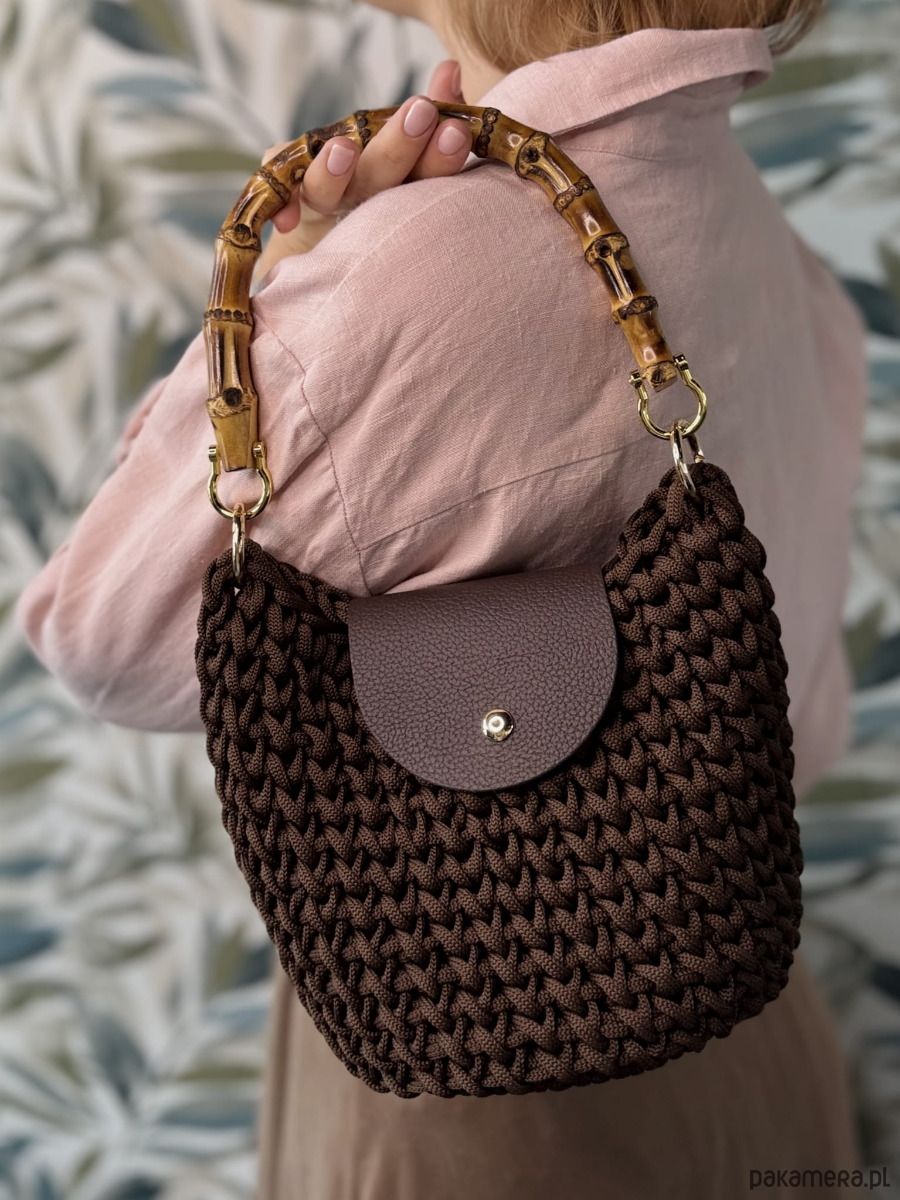 Torebka Classic z bambusowymi rączkami - czekoladowa