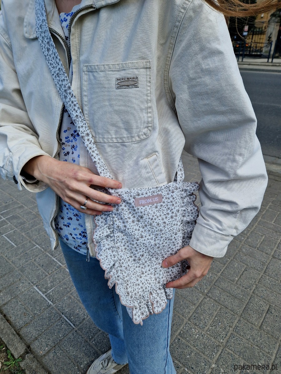 Torebka crossbody upcykling biała w kwiaty