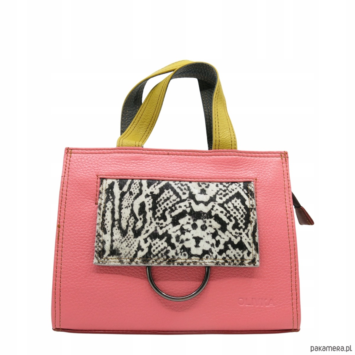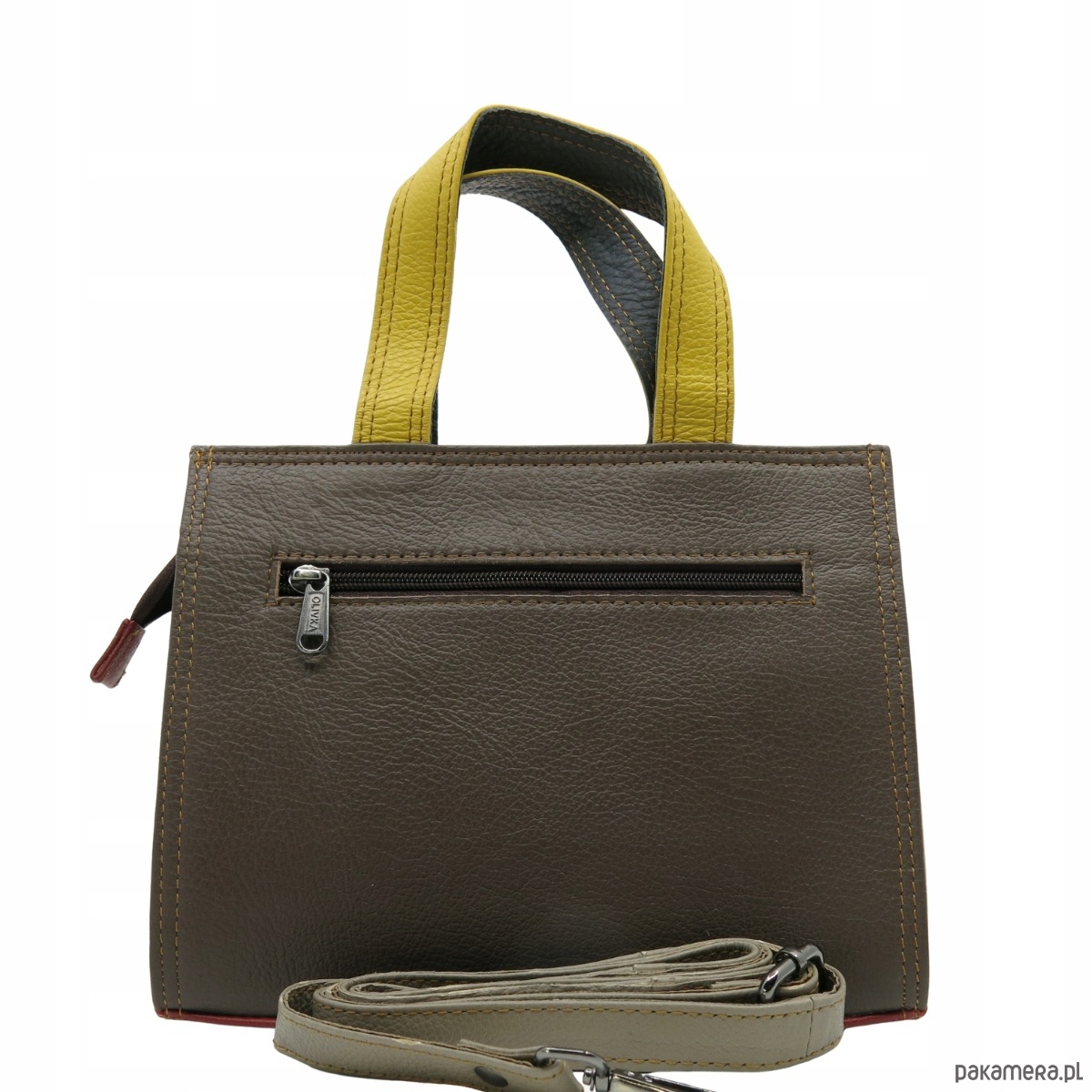Torebka damska do ręki, skóra naturalna, regulowany pasek eko OLIVKA