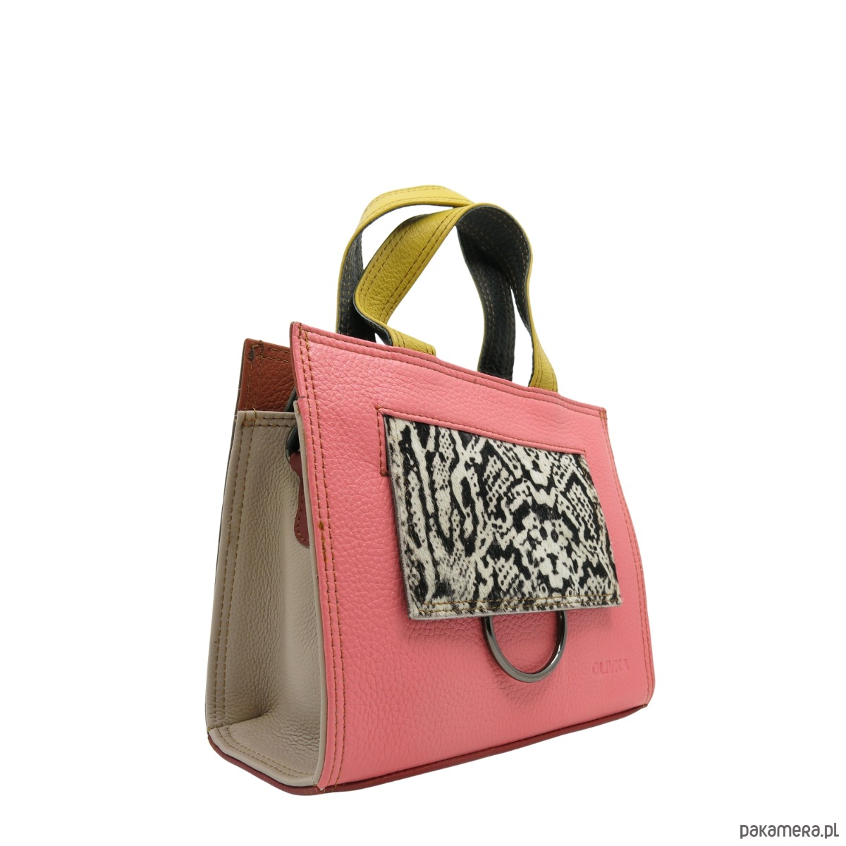 Ta unikalna torebka została uszyta ze skrawków skóry naturalnej. Każdy egzemplarz to małe dzieło sztuki - powstałe w duchu zero waste, z dbałością o środowisko i estetykę. Dzięki starannemu doborowi kolorów i faktur, torebka przyciąga spojrzenia i dodaje charakteru każdej stylizacji.