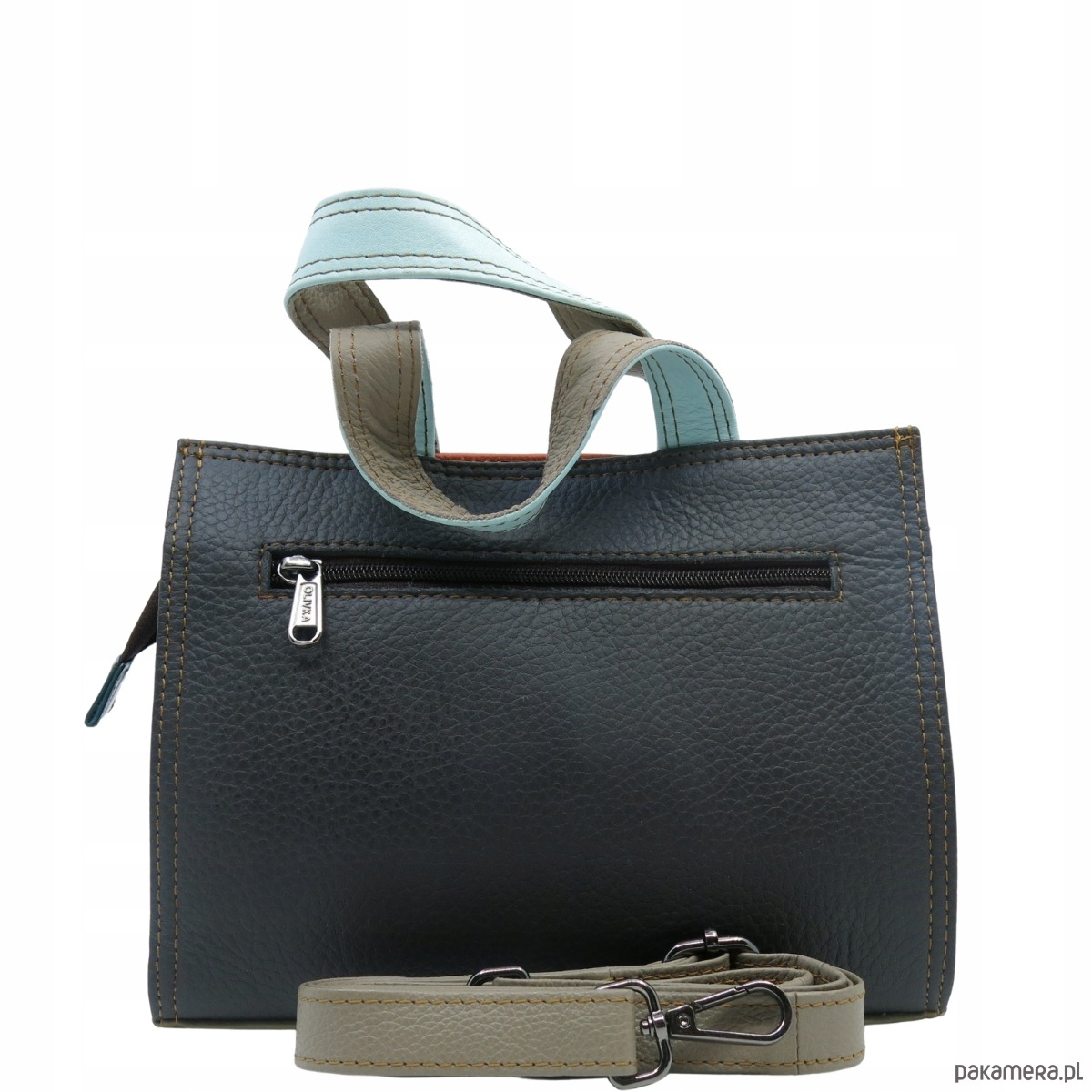 Torebka damska do ręki, skóra naturalna, regulowany pasek eko OLIVKA