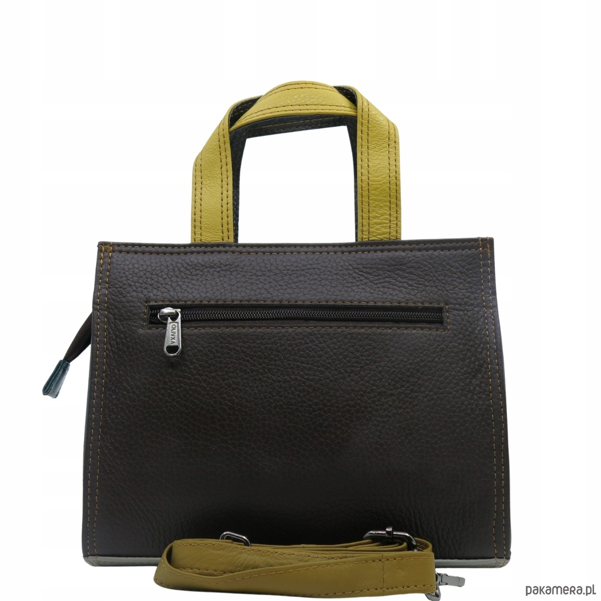 Torebka damska do ręki, skóra naturalna, regulowany pasek eko OLIVKA