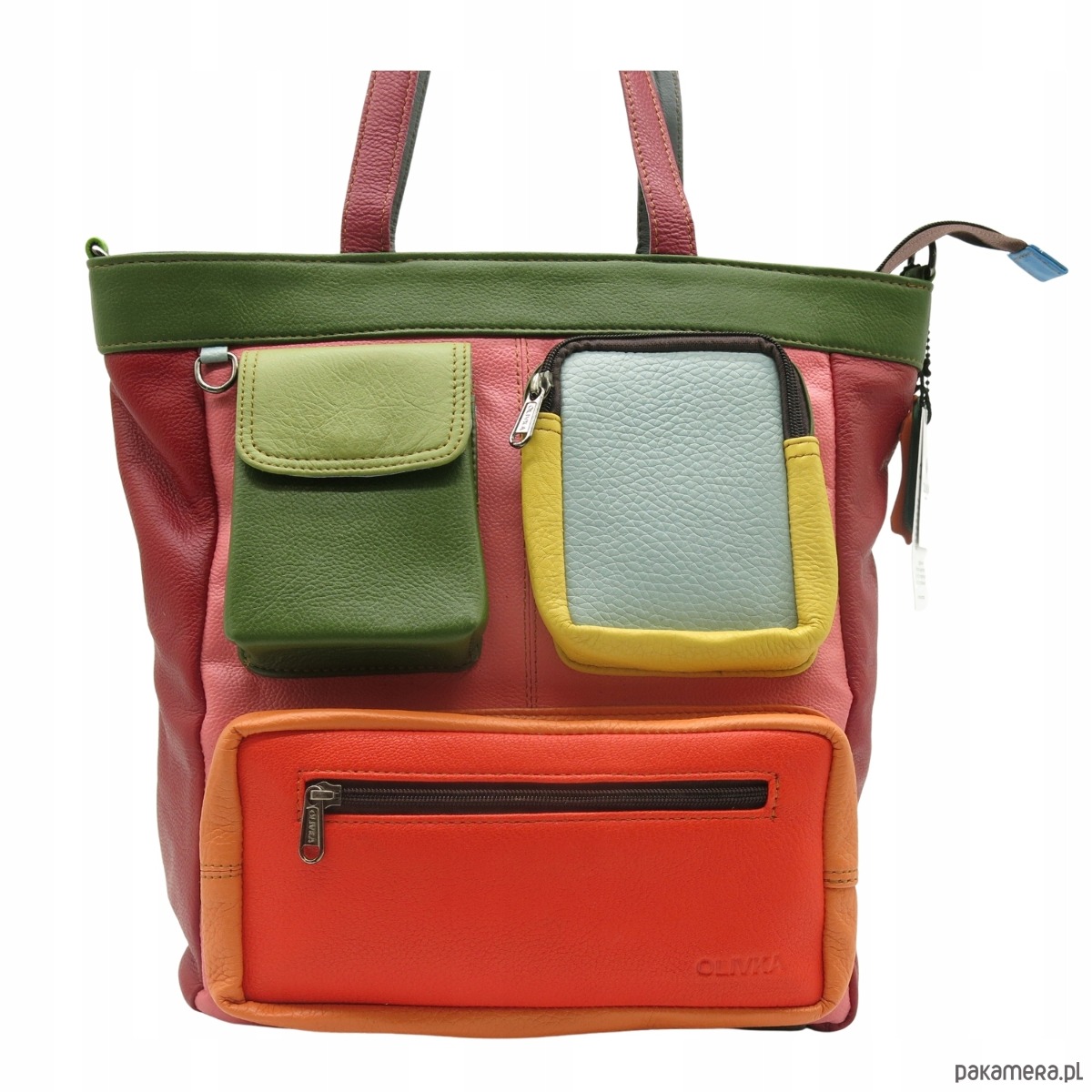 Torebka damska, duża, pojemna, kieszenie, mieści A4, skórzana, OLIVKA