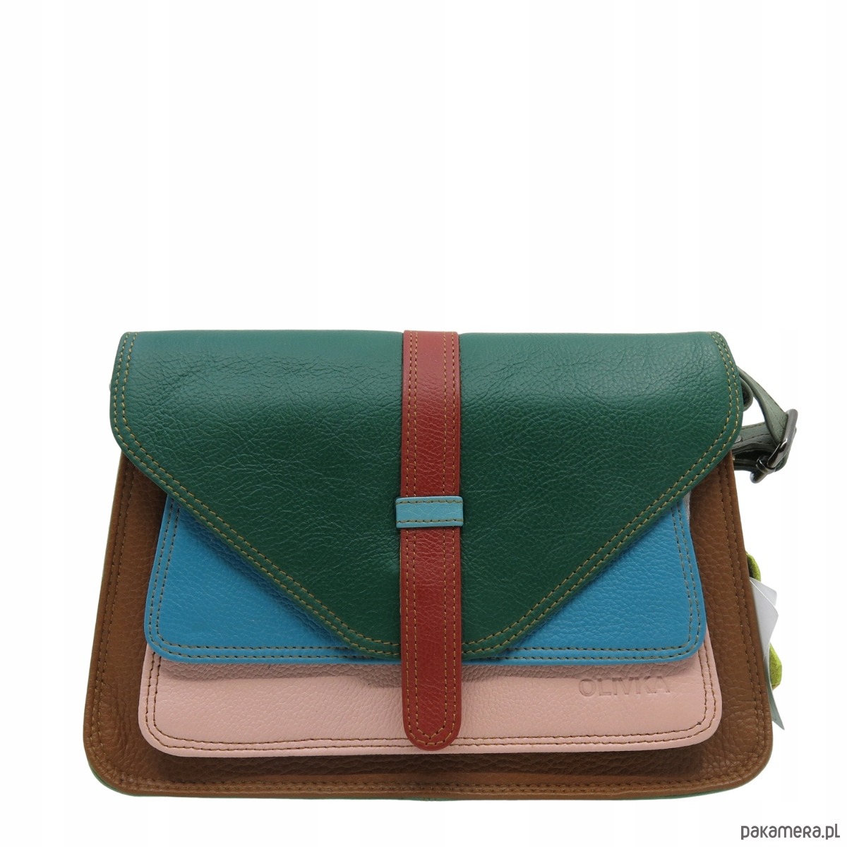 Torebka damska klasyczna elegancka skórzana na ramię pasek OLIVKA