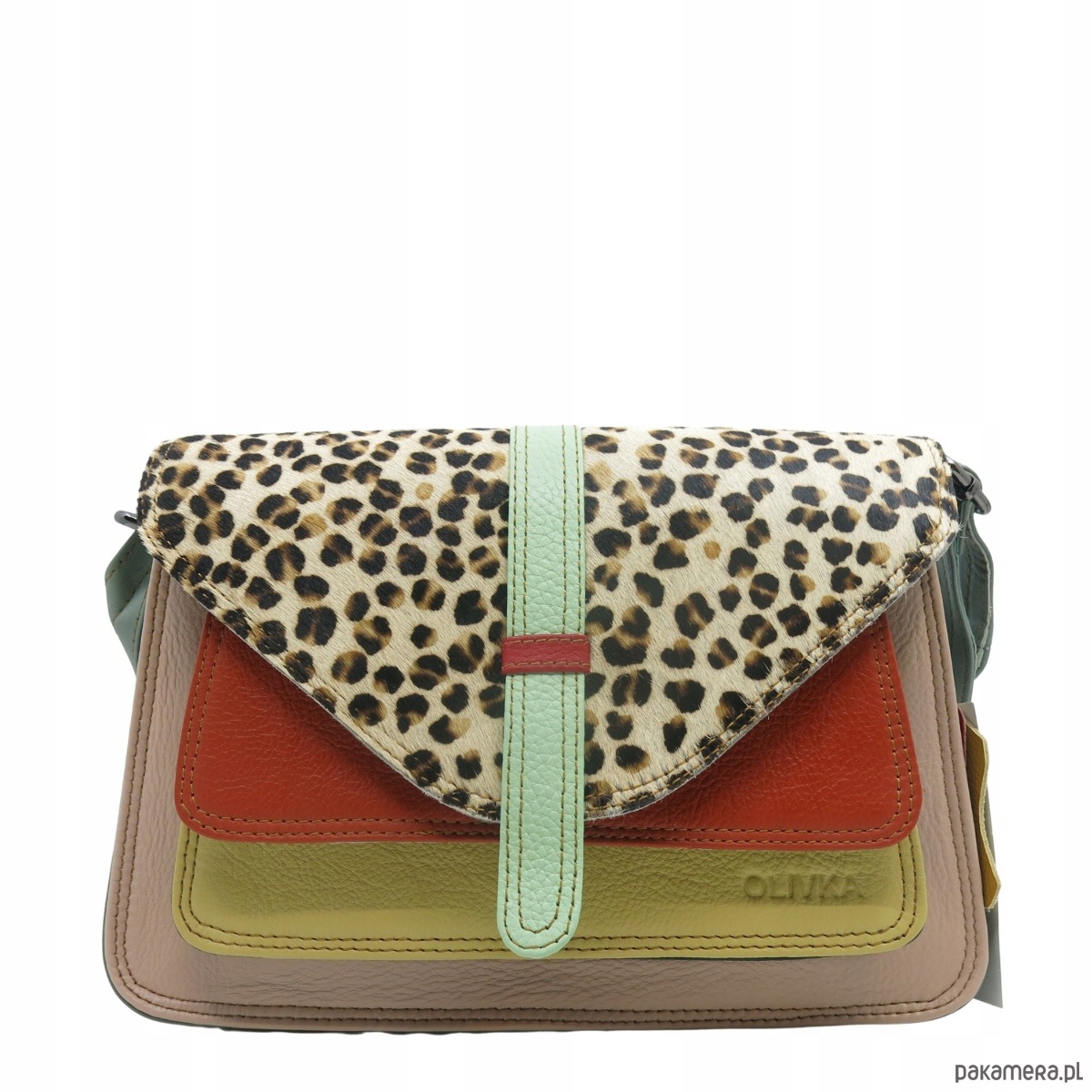 Torebka damska klasyczna elegancka skórzana na ramię pasek OLIVKA