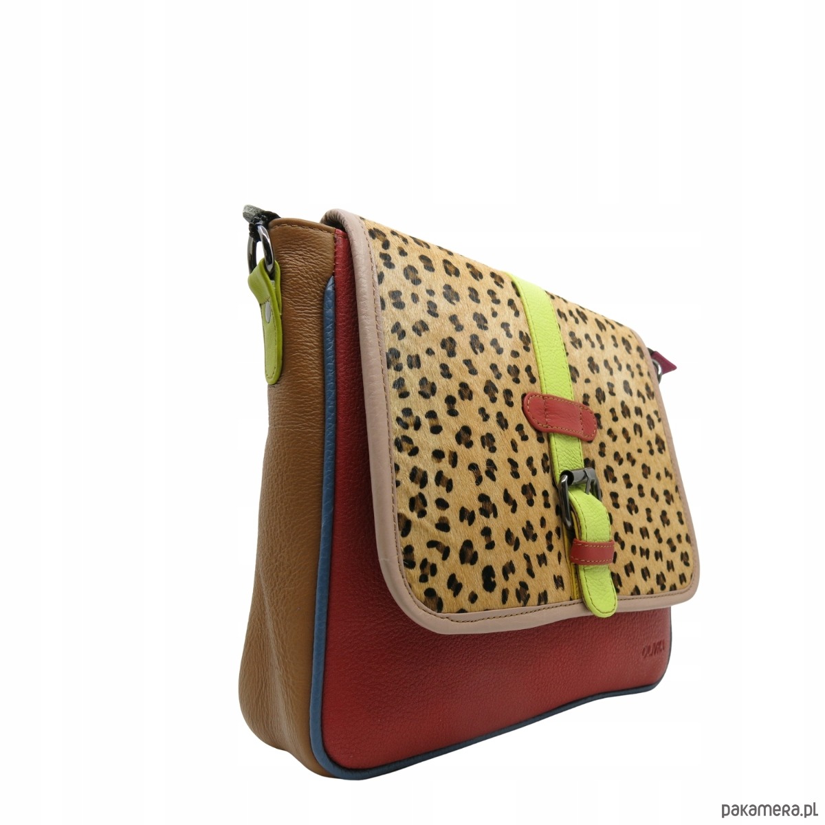 Torebka damska klasyczna na ramię skórzana pojemna klapka wzór OLIVKA
