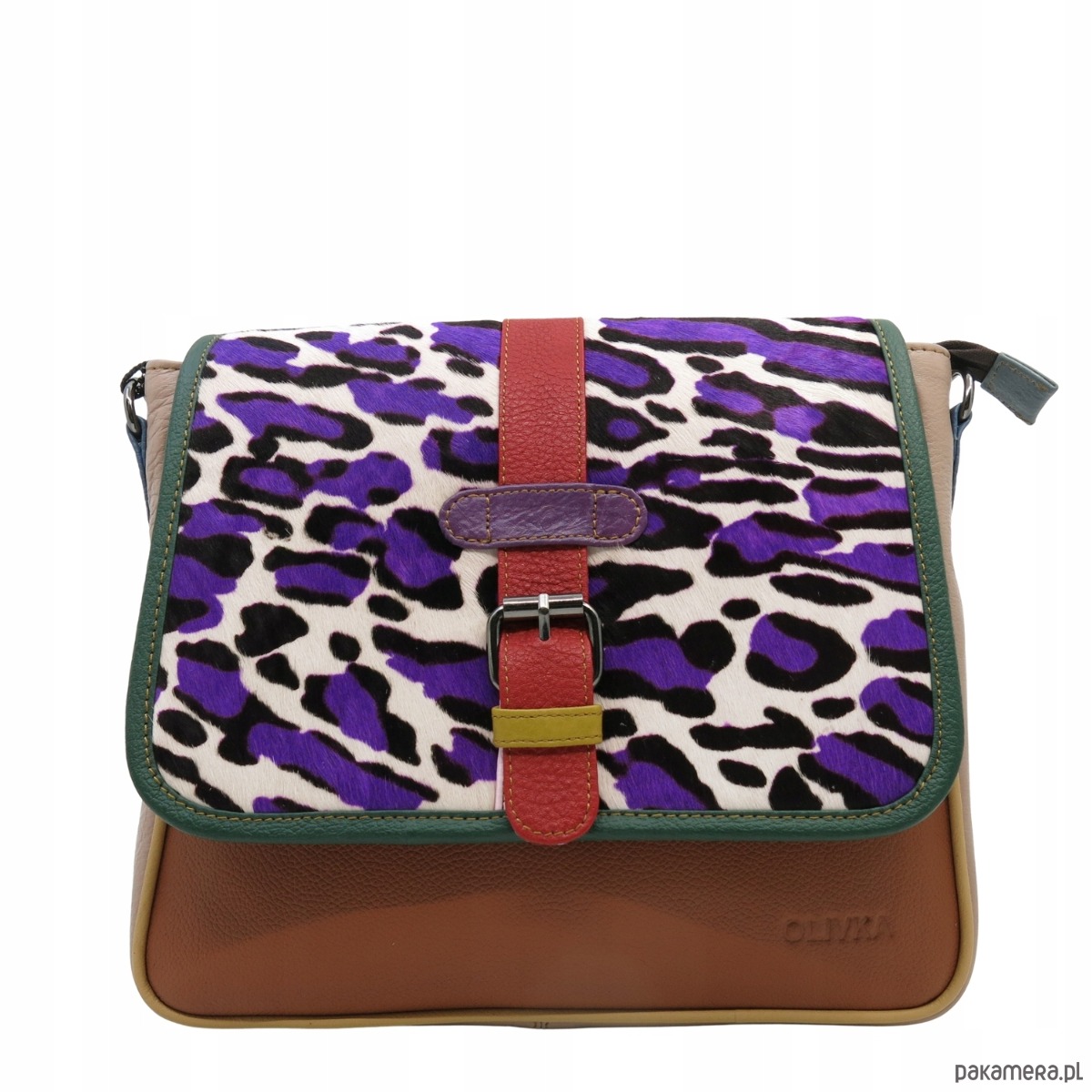 Torebka damska klasyczna na ramię skórzana pojemna klapka wzór OLIVKA