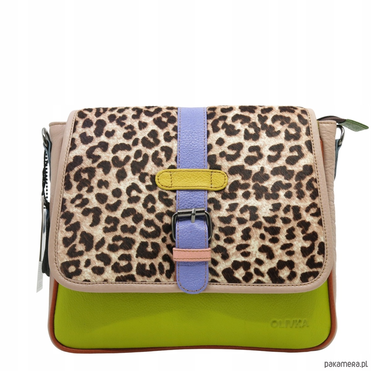 Torebka damska klasyczna na ramię skórzana pojemna klapka wzór OLIVKA