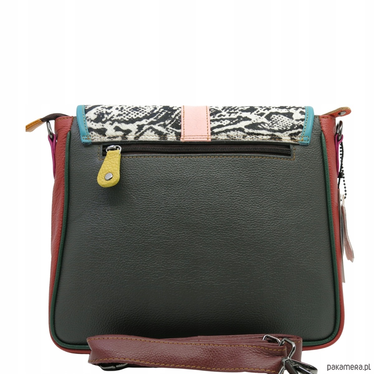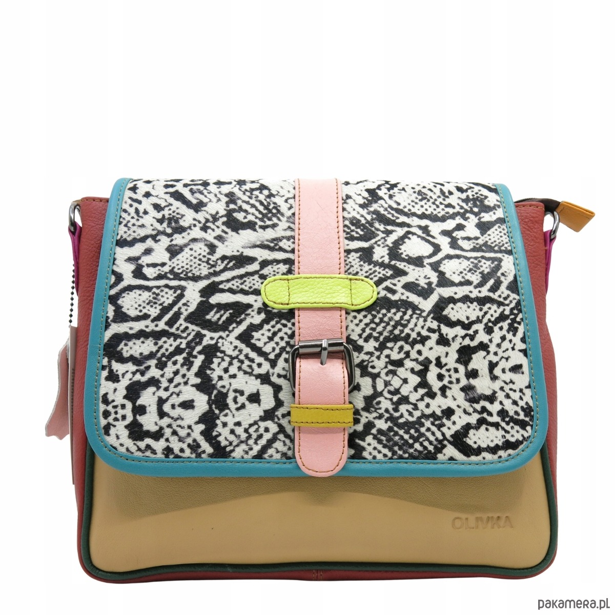 Torebka damska klasyczna na ramię skórzana pojemna klapka wzór OLIVKA
