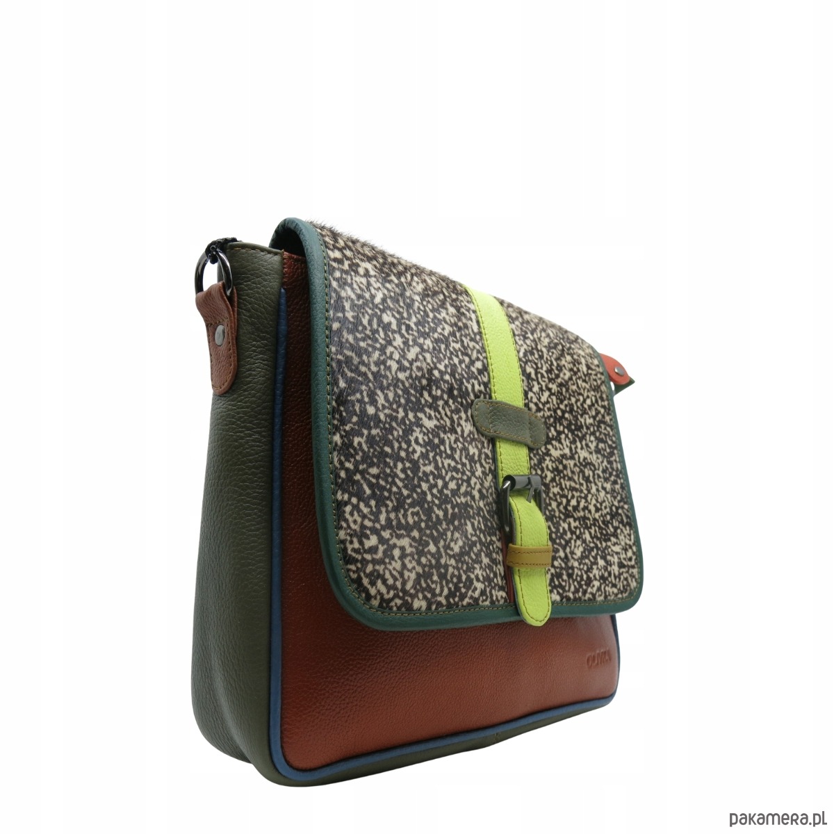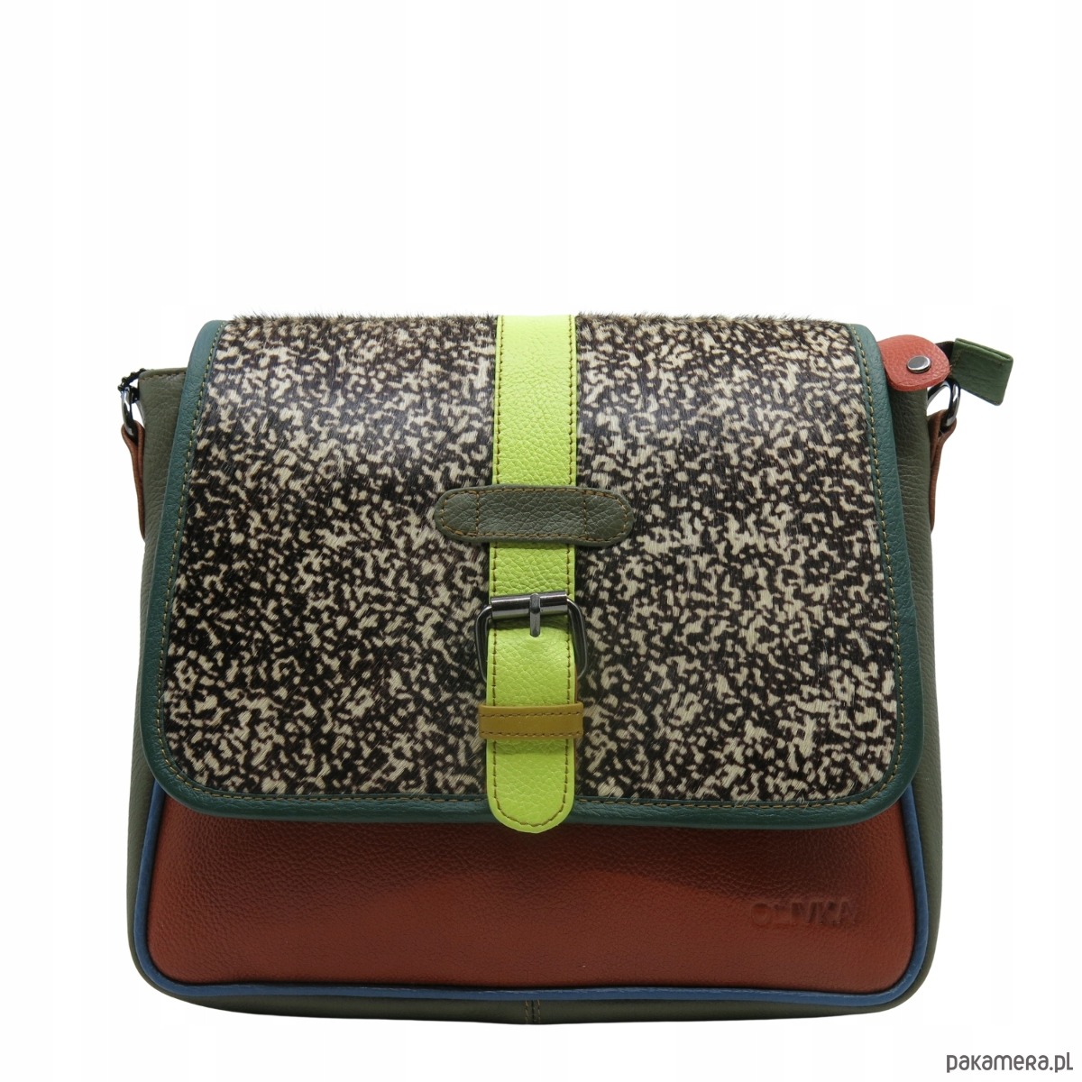 Torebka damska klasyczna na ramię skórzana pojemna klapka wzór OLIVKA