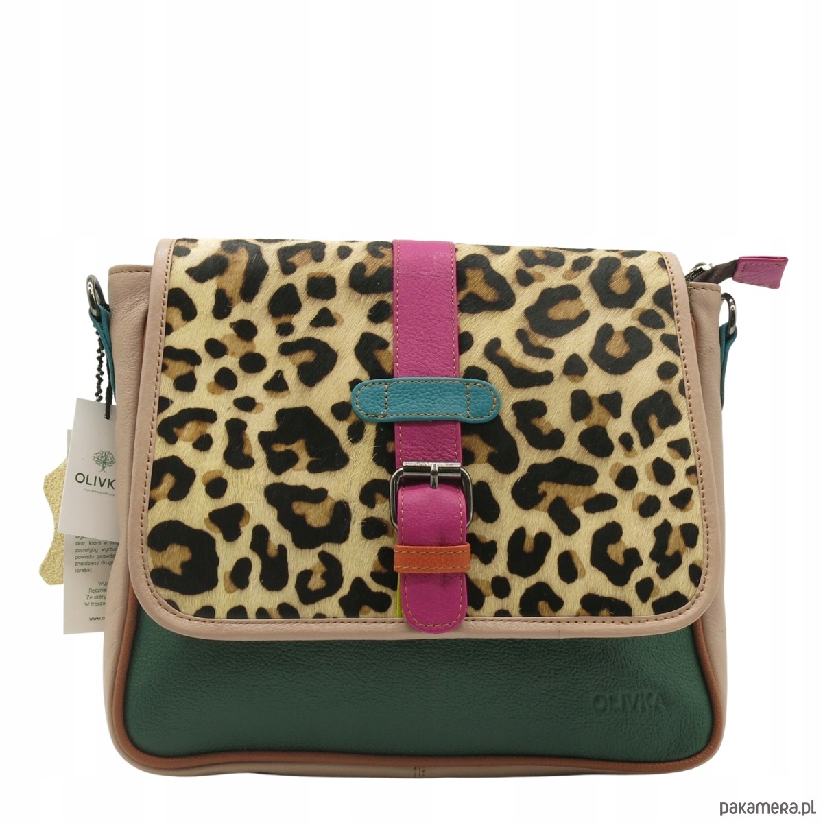 Torebka damska klasyczna na ramię skórzana pojemna klapka wzór OLIVKA