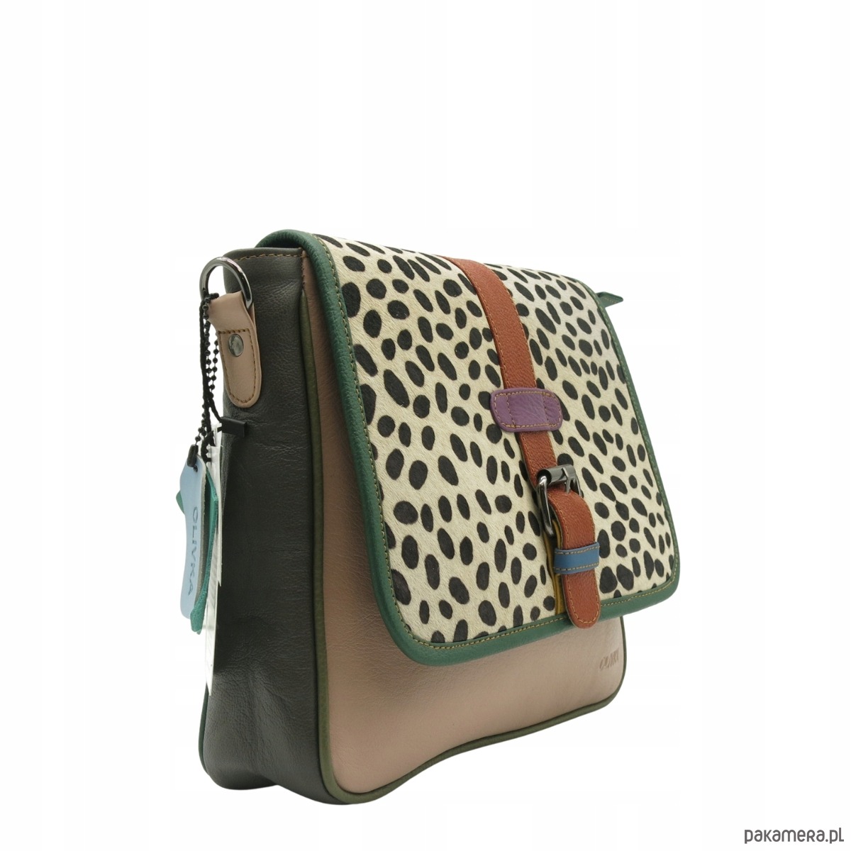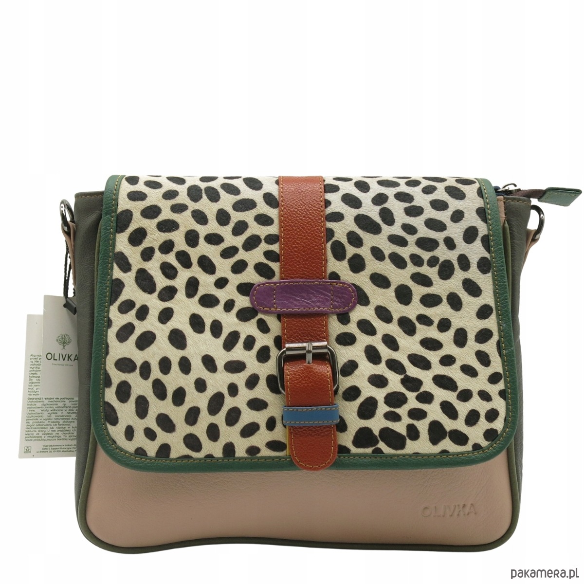 Torebka damska klasyczna na ramię skórzana pojemna klapka wzór OLIVKA