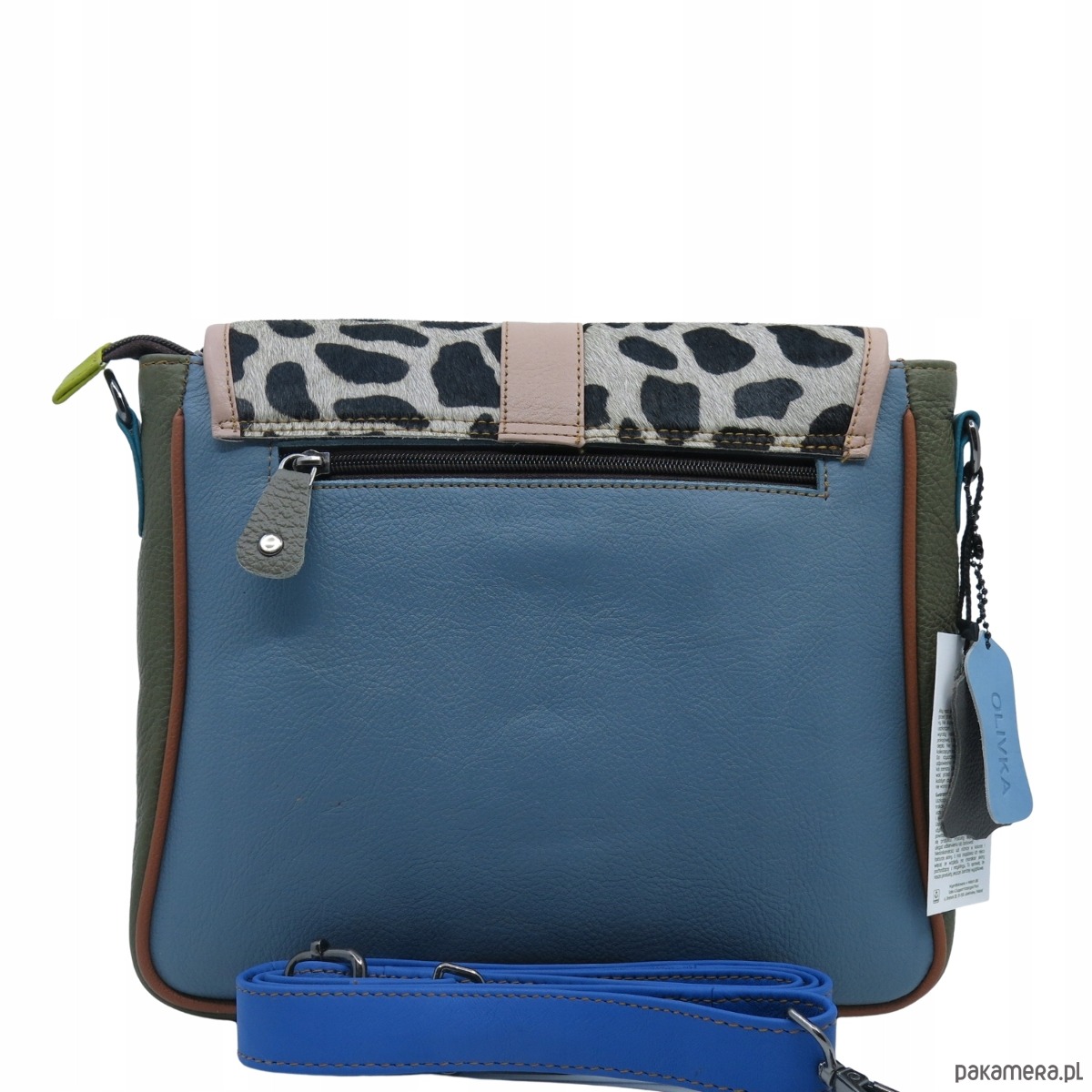 Torebka damska klasyczna na ramię skórzana pojemna klapka wzór OLIVKA