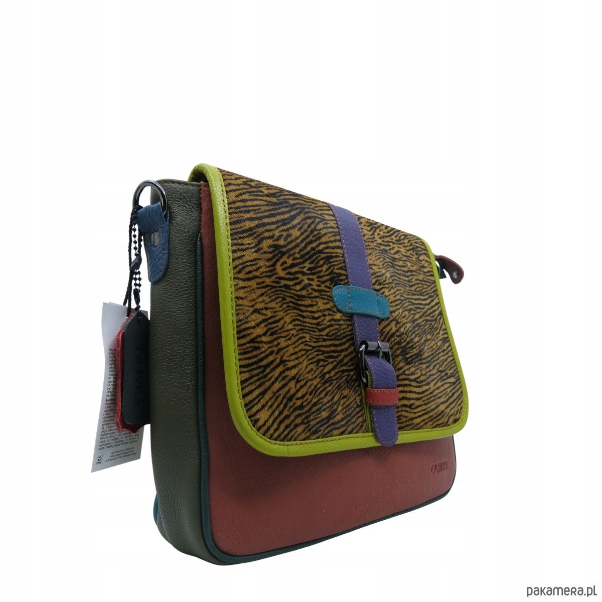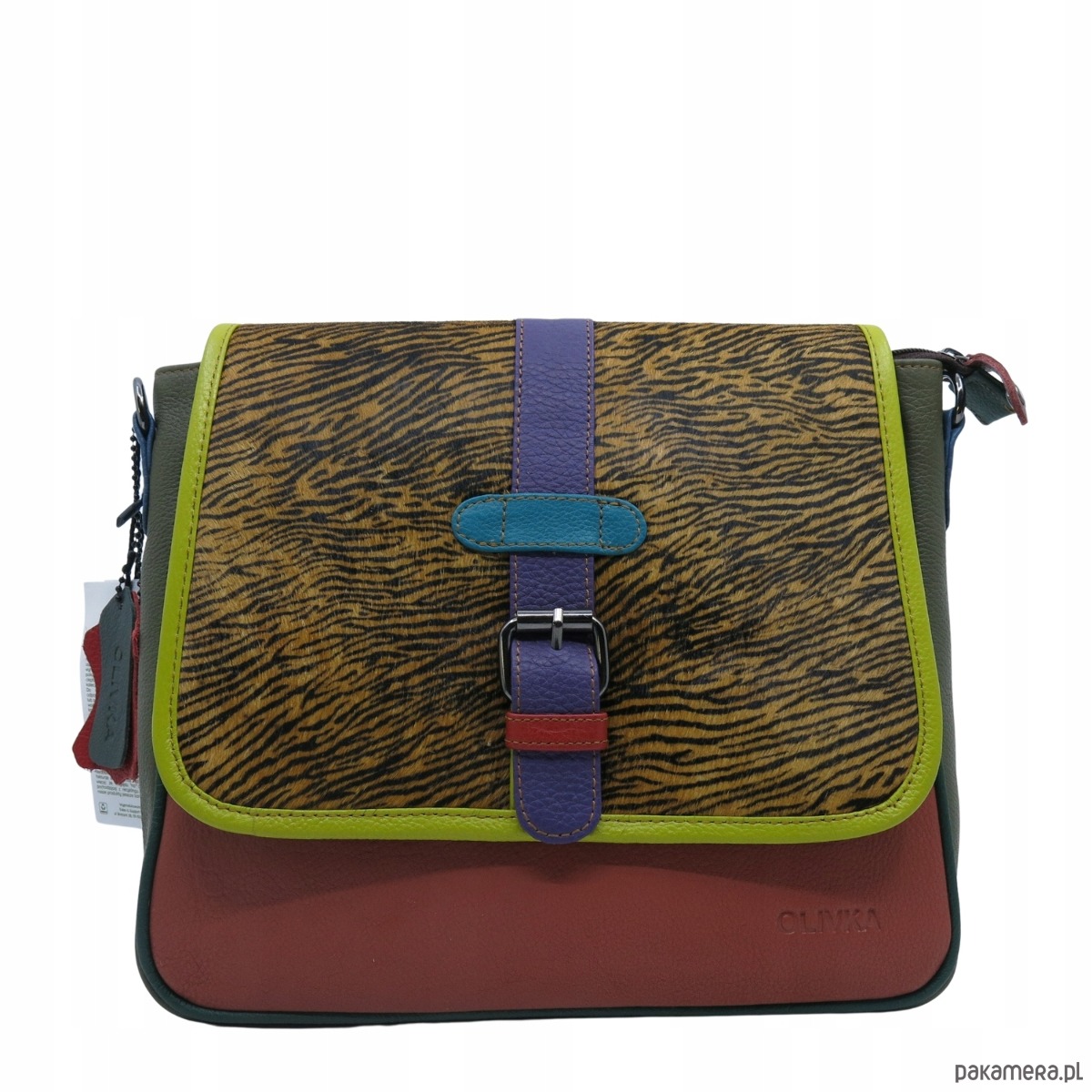Torebka damska klasyczna na ramię skórzana pojemna klapka wzór OLIVKA