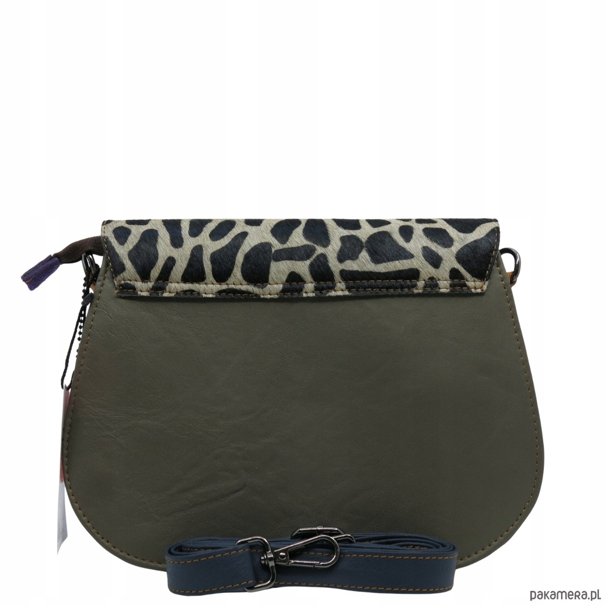 Torebka damska klasyczna na ramię skórzana zamszowa klapka wzór eko OLIVKA
