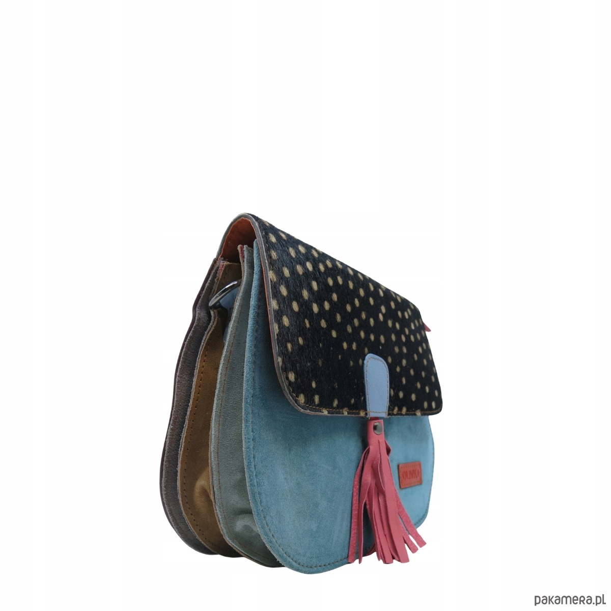 tył torebki wykonany ze skrawków skóry naturalnej