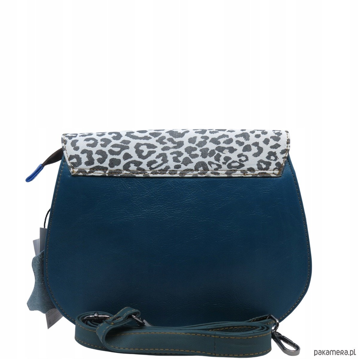 skórzana klapka z nadrukiem, bez włosia