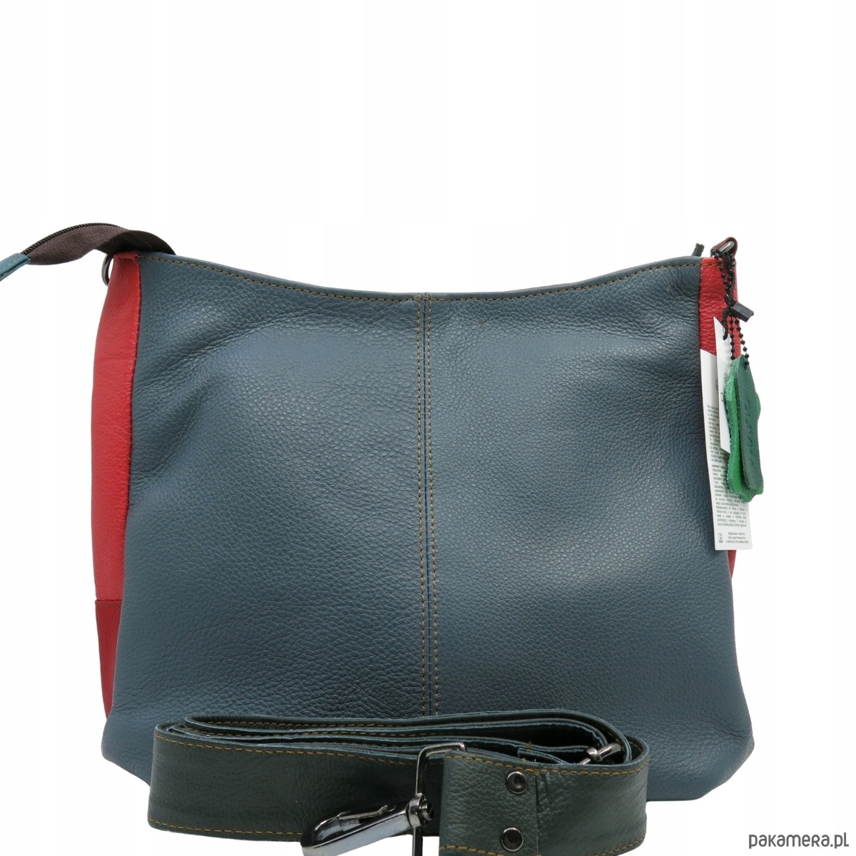 Torebka damska klasyczna skórzana na ramię oryginalna szeroki pasek OLIVKA