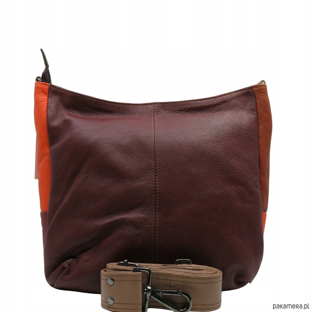 Torebka damska klasyczna skórzana na ramię oryginalna szeroki pasek OLIVKA