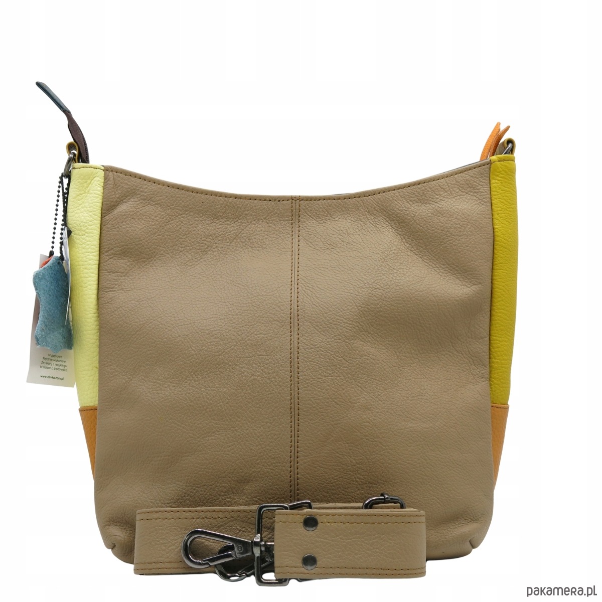 Torebka damska klasyczna skórzana na ramię oryginalna szeroki pasek OLIVKA