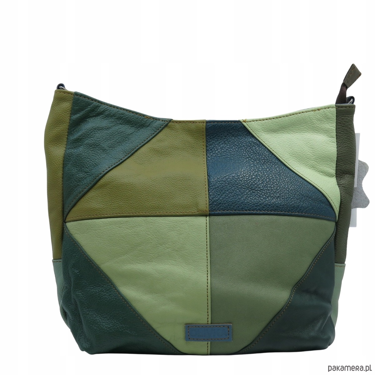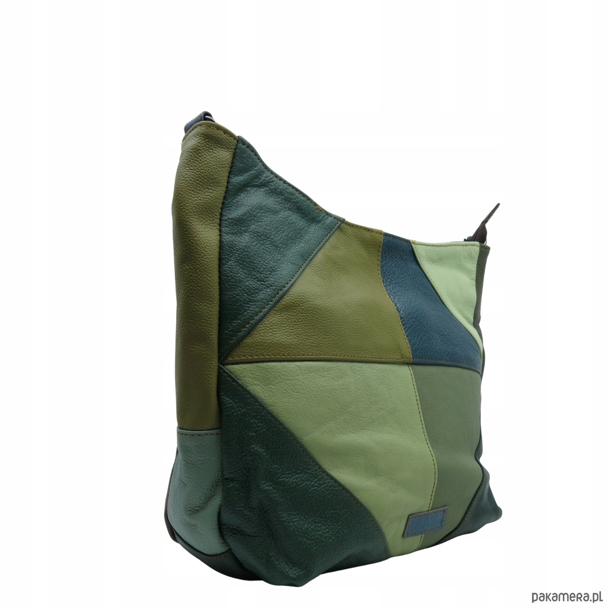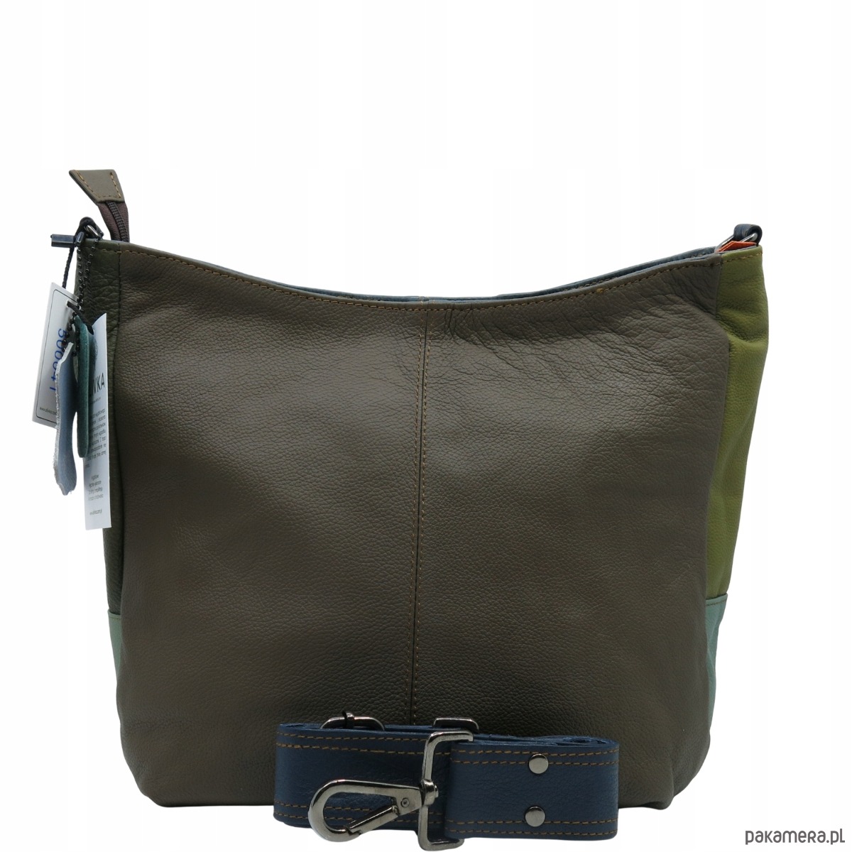 Torebka damska klasyczna skórzana na ramię oryginalna szeroki pasek OLIVKA