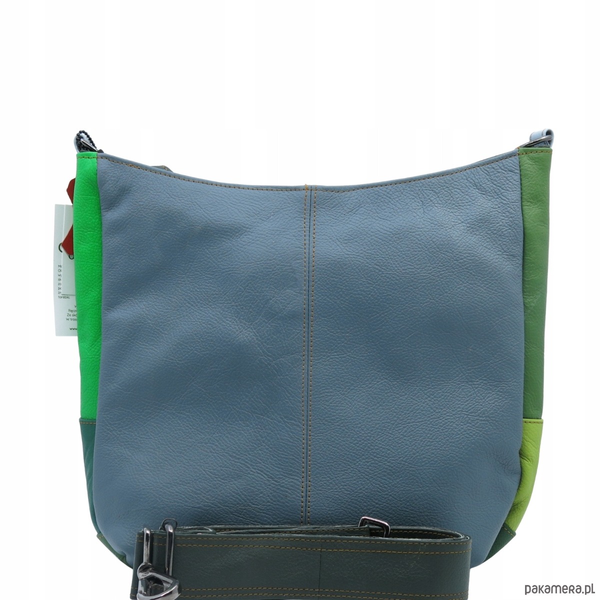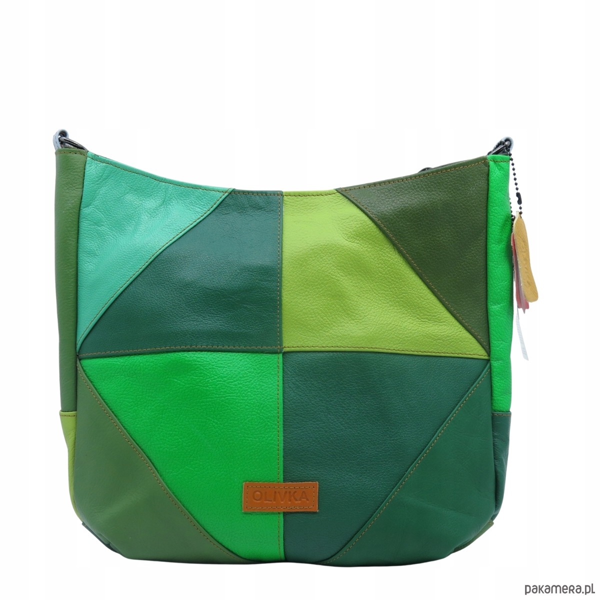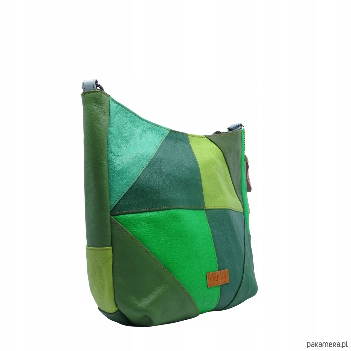 Torebka damska klasyczna skórzana na ramię oryginalna szeroki pasek OLIVKA