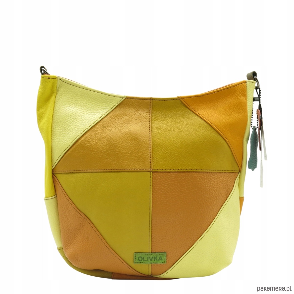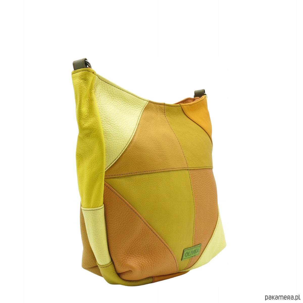 Torebka damska klasyczna skórzana na ramię oryginalna szeroki pasek OLIVKA