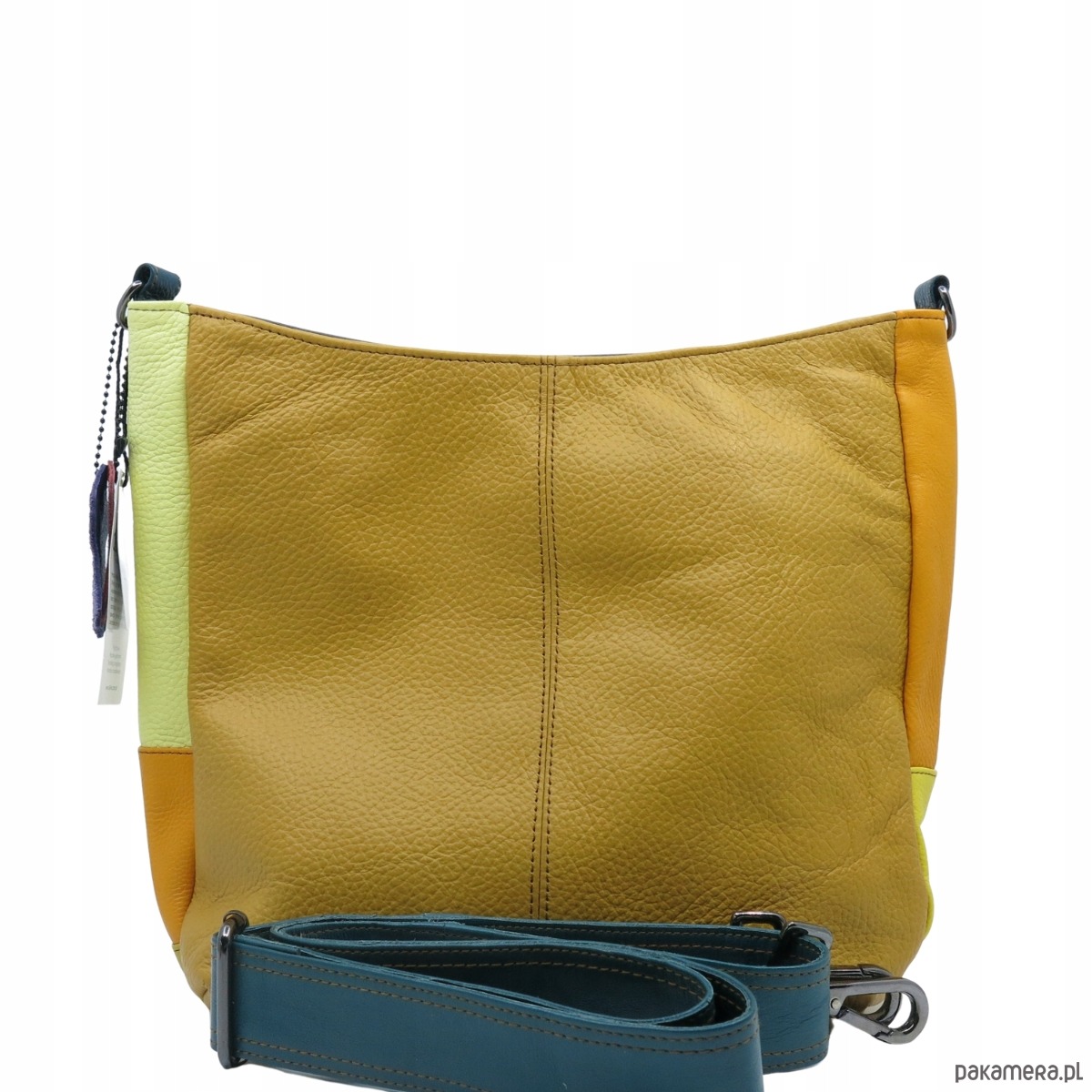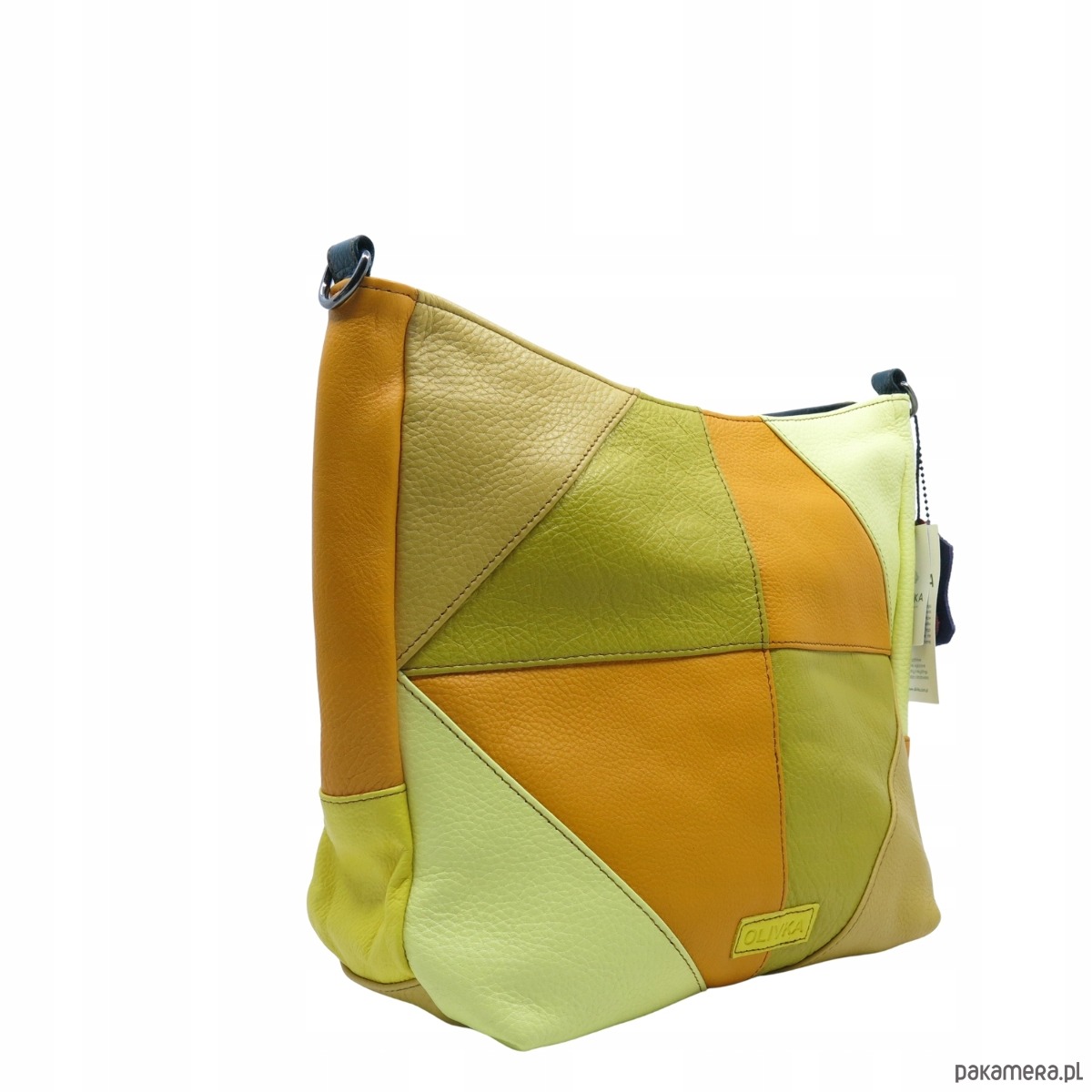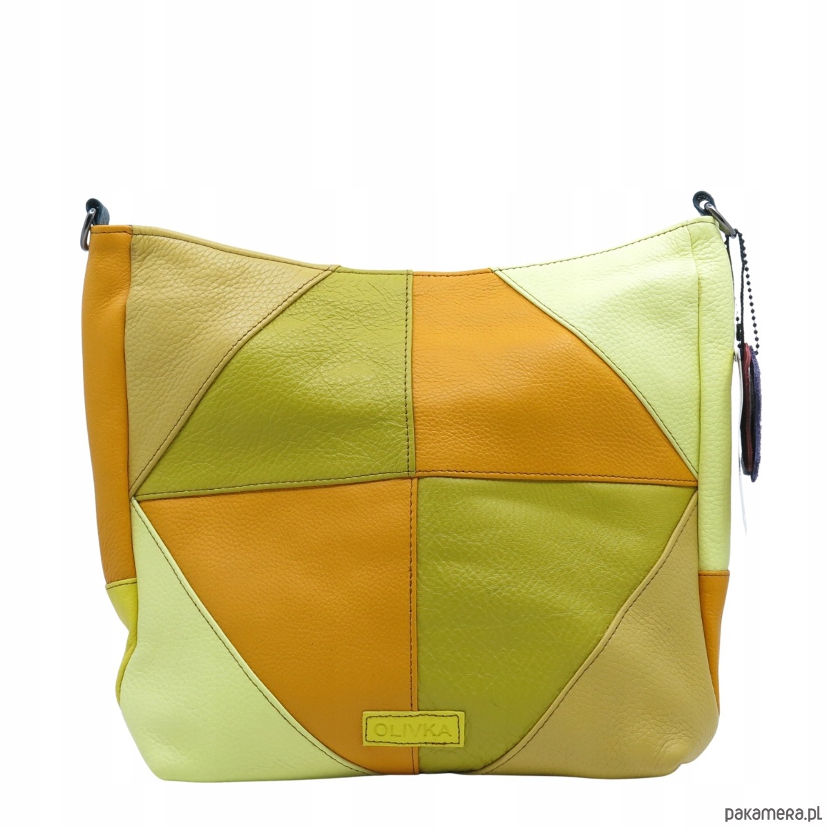 Torebka damska klasyczna skórzana na ramię oryginalna szeroki pasek OLIVKA
