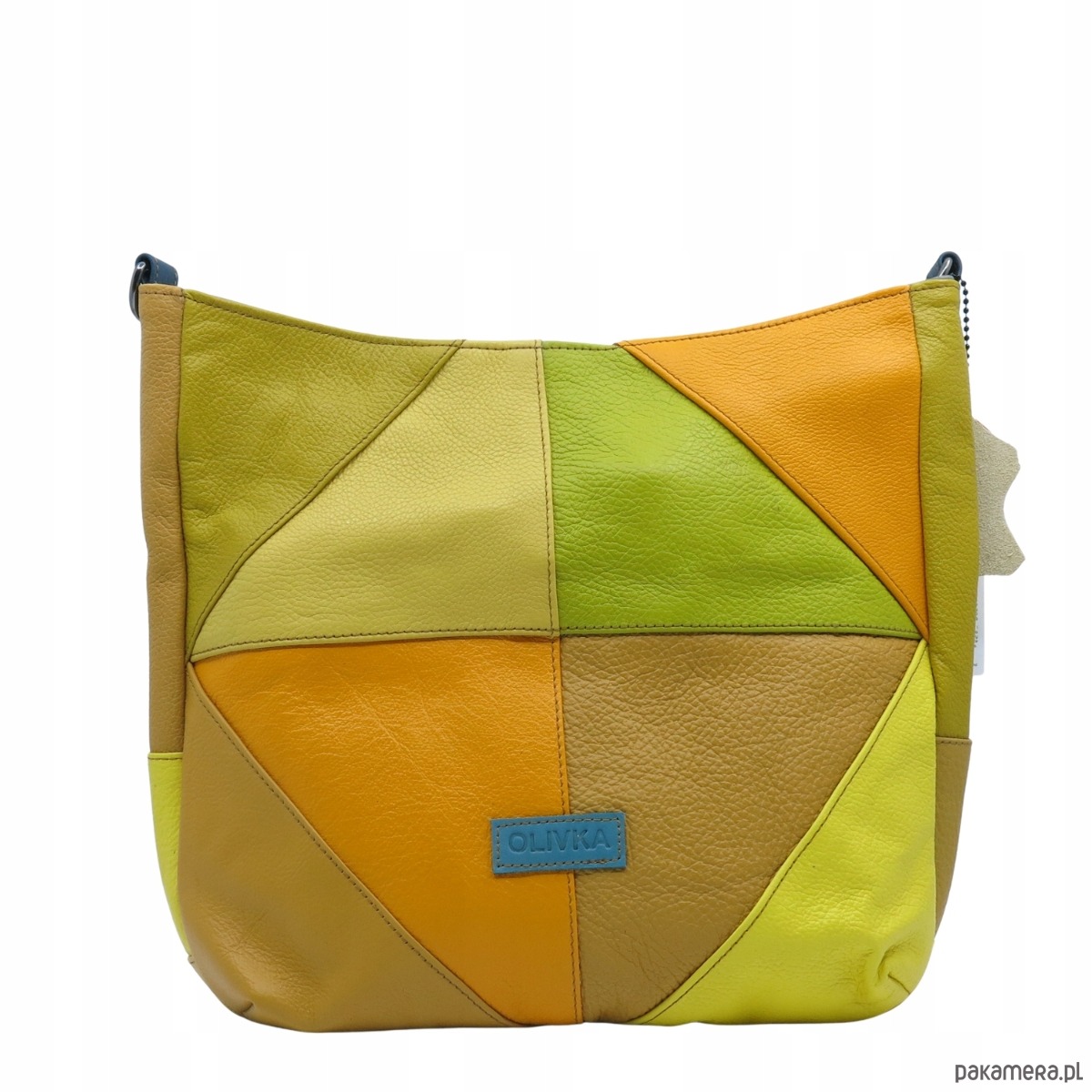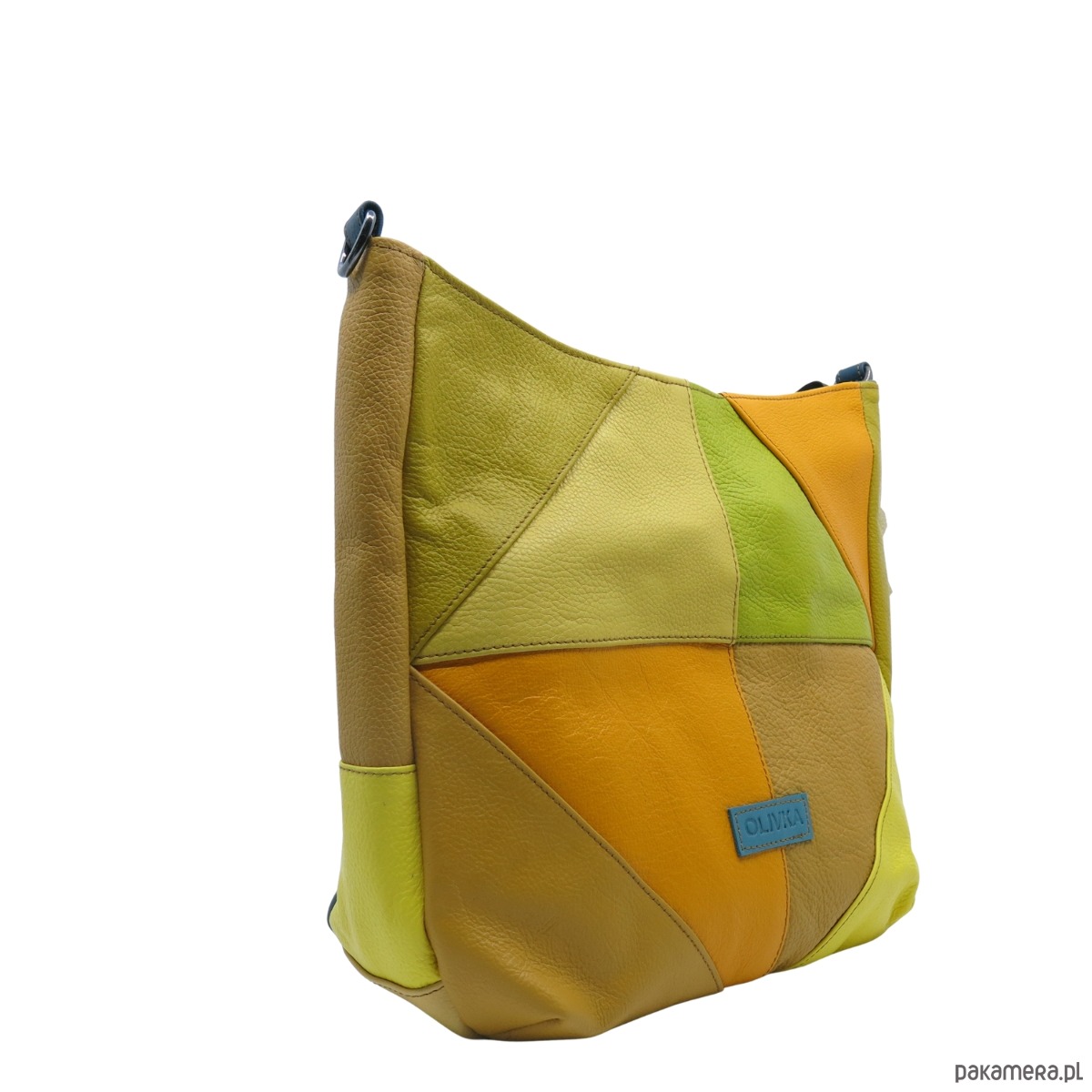 Torebka damska klasyczna skórzana na ramię oryginalna szeroki pasek OLIVKA