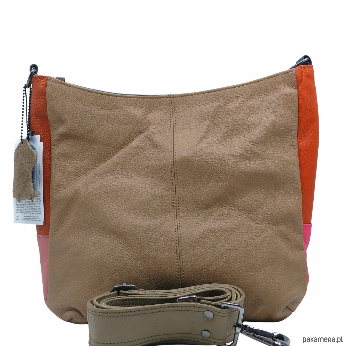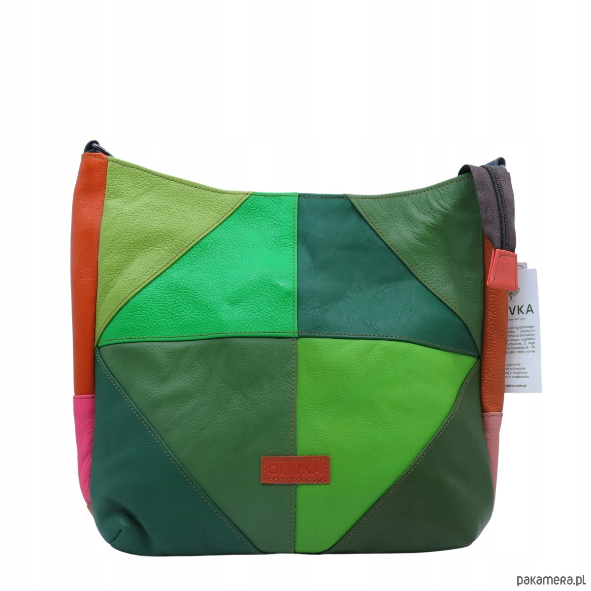 Torebka damska klasyczna skórzana na ramię oryginalna szeroki pasek OLIVKA