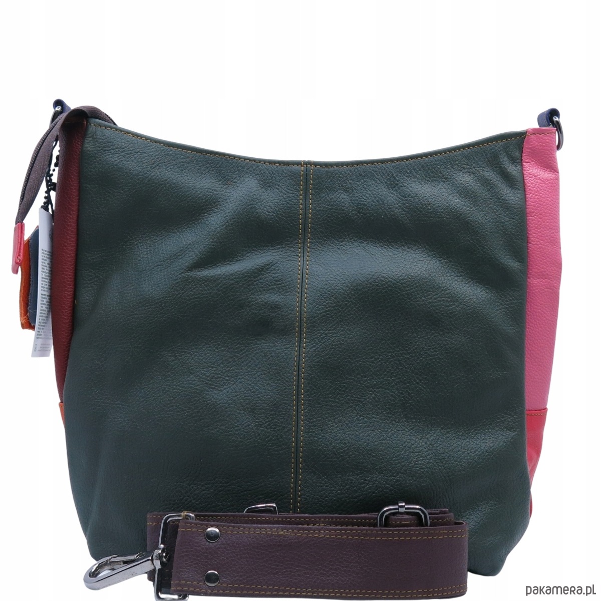 Torebka damska klasyczna skórzana na ramię oryginalna szeroki pasek OLIVKA
