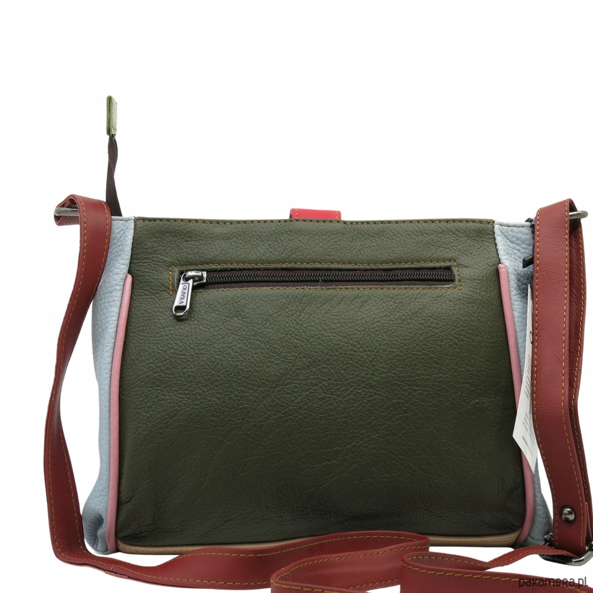 Torebka damska klasyczna skórzana pojemna kieszenie kolorowa pasek OLIVKA