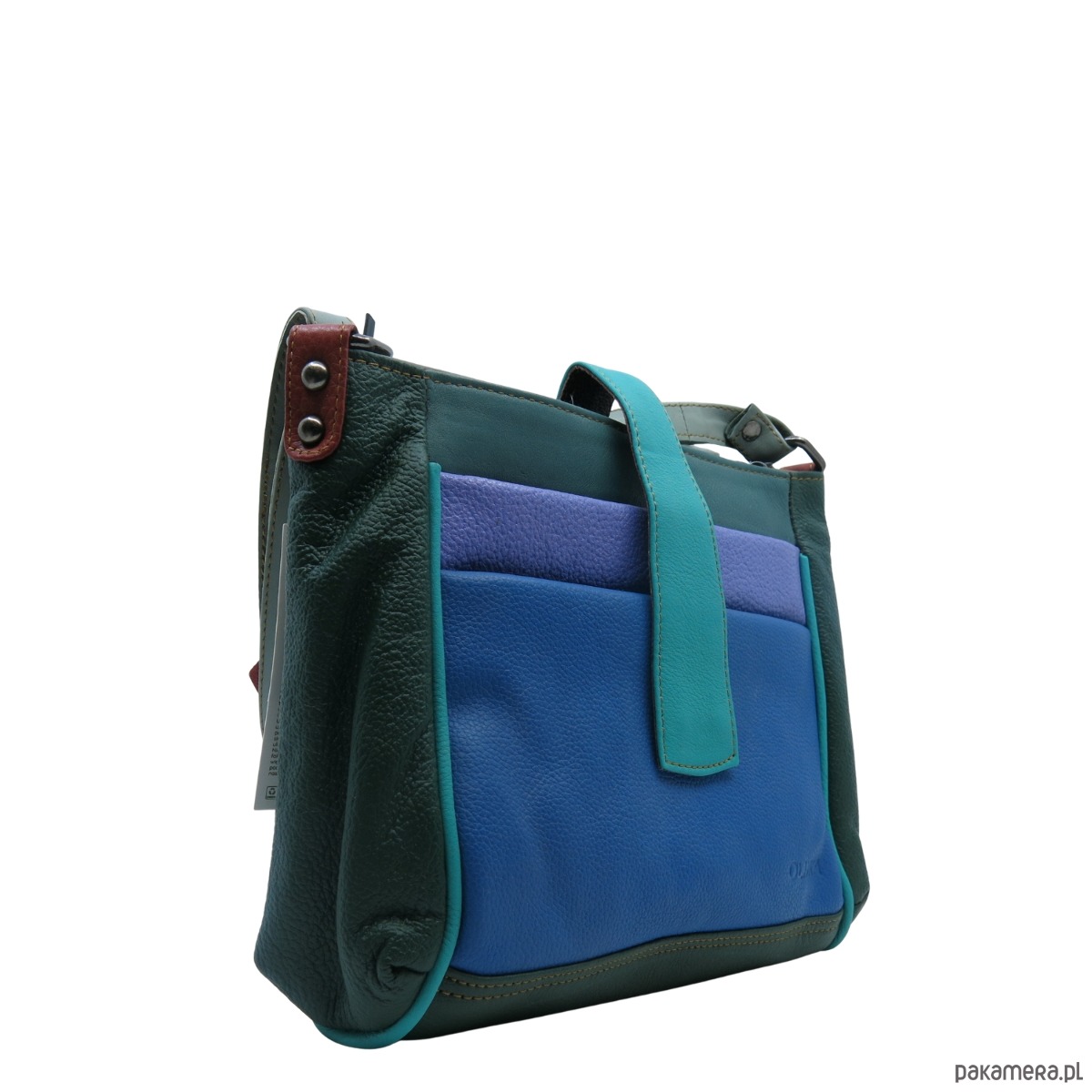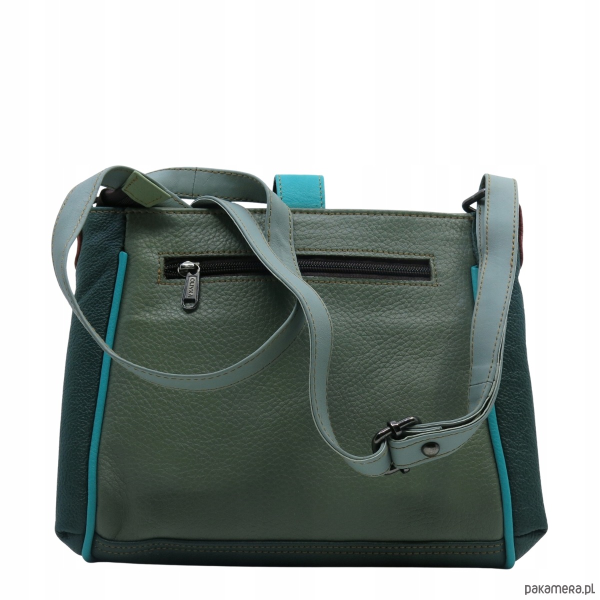 Torebka damska klasyczna skórzana pojemna kieszenie kolorowa pasek OLIVKA