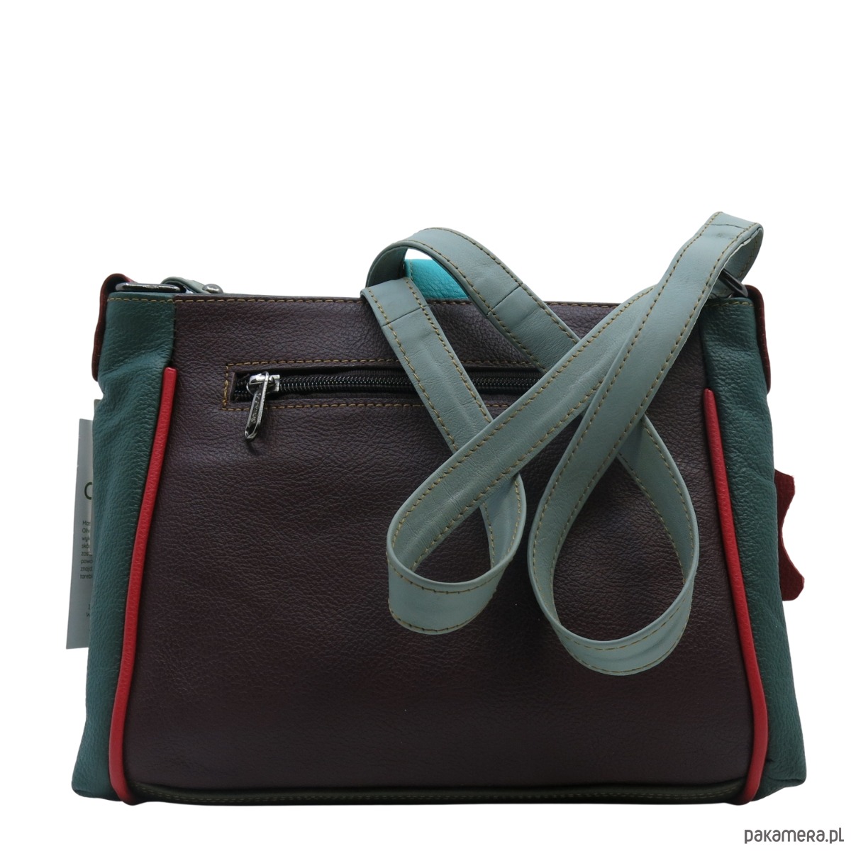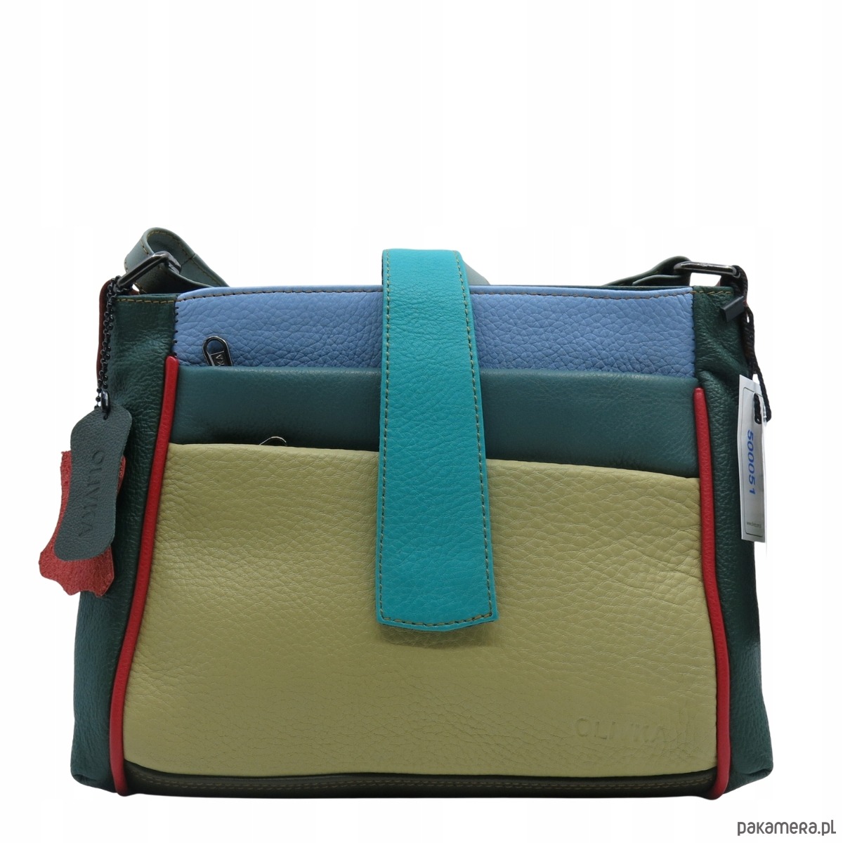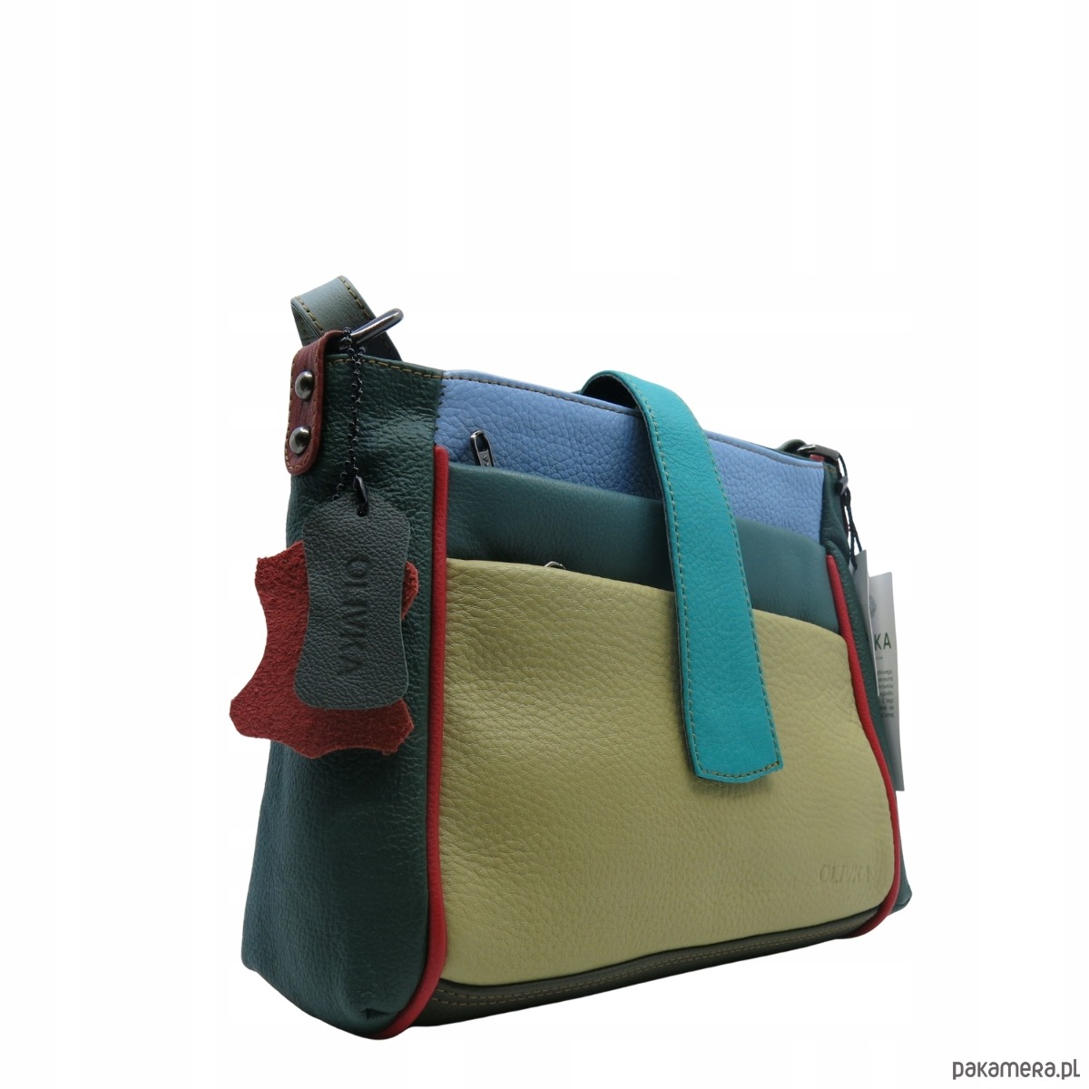 Torebka damska klasyczna skórzana pojemna kieszenie kolorowa pasek OLIVKA