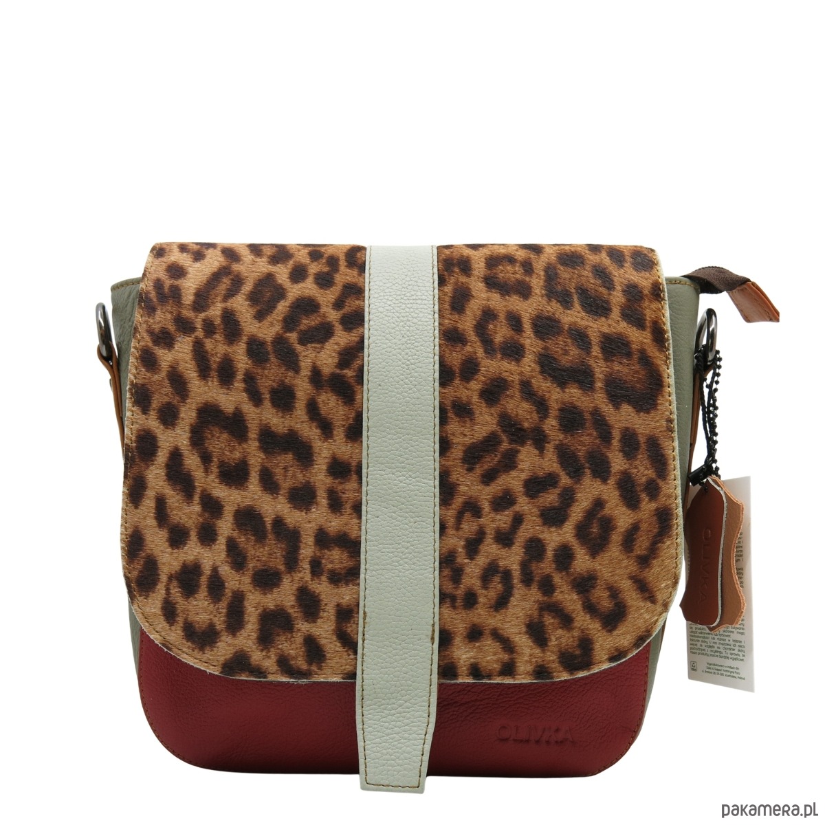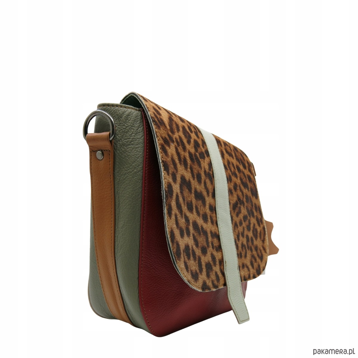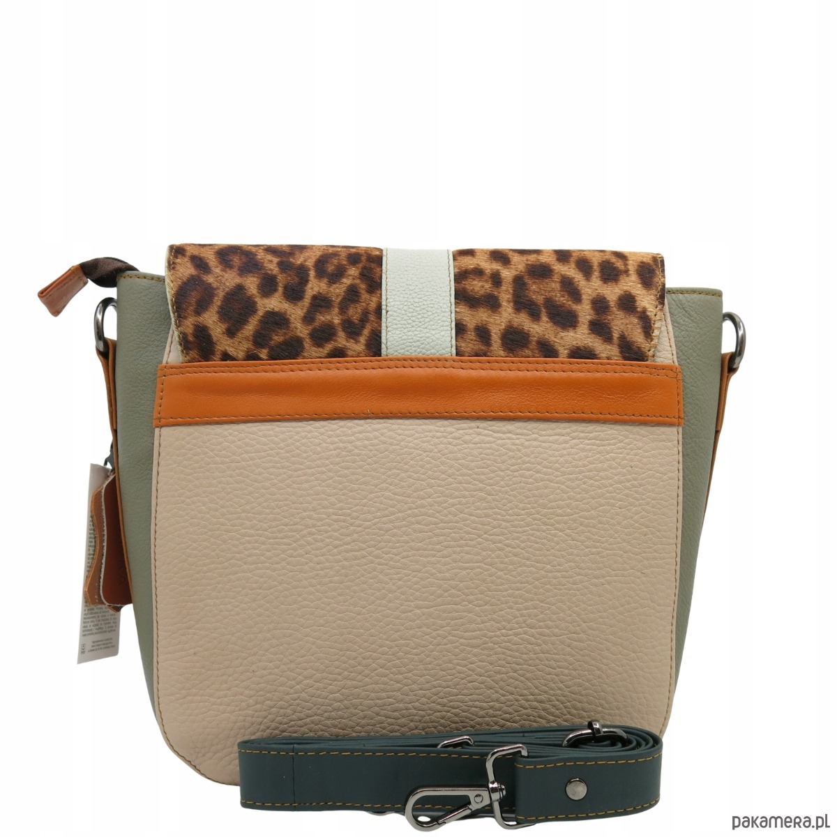 Torebka damska klasyczna skórzana regulowany pasek klapka wzór OLIVKA